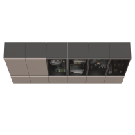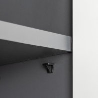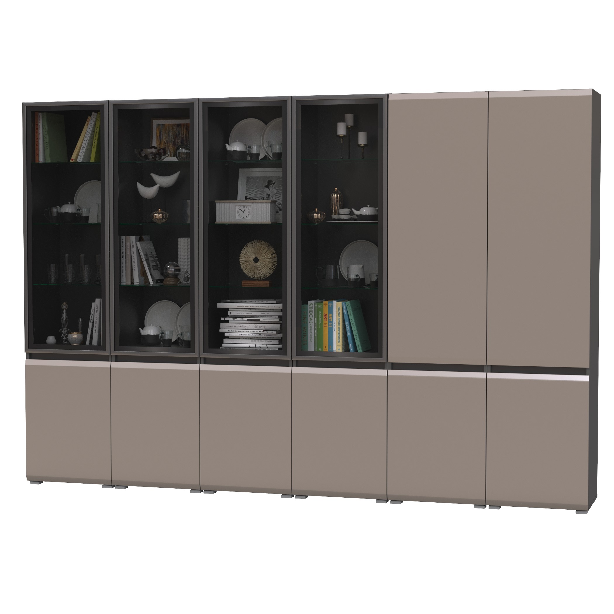 Каждый шкаф-витрина Сидней 13.201 (в комплектации 4 единицы) разделён на два отделения за распашными дверками - верхнее и нижнее. Верхнее отделение со стеклянной дверкой, за которой располагаются три стеклянные полки. За глухой дверкой нижнего отделения имеется одна полочка. Чёрная задняя стенка эффектно подчеркивает наполнение шкафов. Фасады могут открываться за край (ящики), либо нажатием (дверцы), с помощью механизма Push-to-Open, позволяющий отказаться от использования ручек. Распашные фасады оснащены доводчиками, что обеспечивает плавное закрывание и исключает удар о корпус. Универсальная сборка - сторону открывания дверей, Вы определяете при сборке.