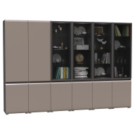 Комплектация состоит из двух шкафов с дверками Сидней 13.200 и четырех шкафов с фасадами стекло Сидней 13.201.