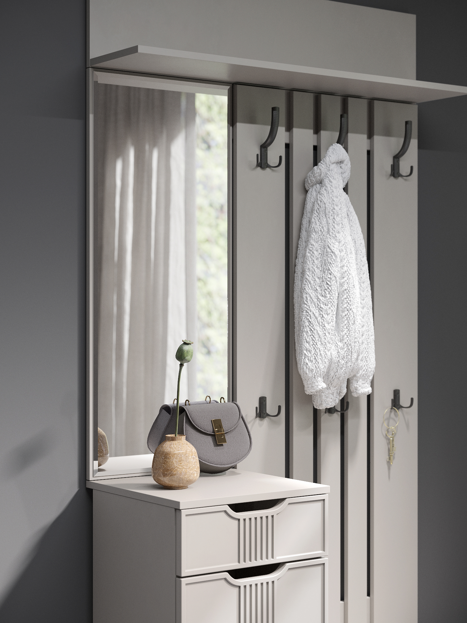 Зеркало Эмилия ЭЛ-5 можно установить как вертикально, так и горизонтально. Для крепления зеркала к стене в комплекте фурнитуры идут удобные регулируемые подвески. Фацет по краю придает изделию законченный вид, выразительность и дополнительный блеск. Зеркальное полотно установлено на панель из лдсп. Размер зеркального полотна: 91х38 см. Размер зеркала полностью с учетом рамки: 93х40 см. Сочетая зеркало с другими модулями из коллекции Эмилия, Вы можете создать стильную и лаконичную прихожую у себя дома.