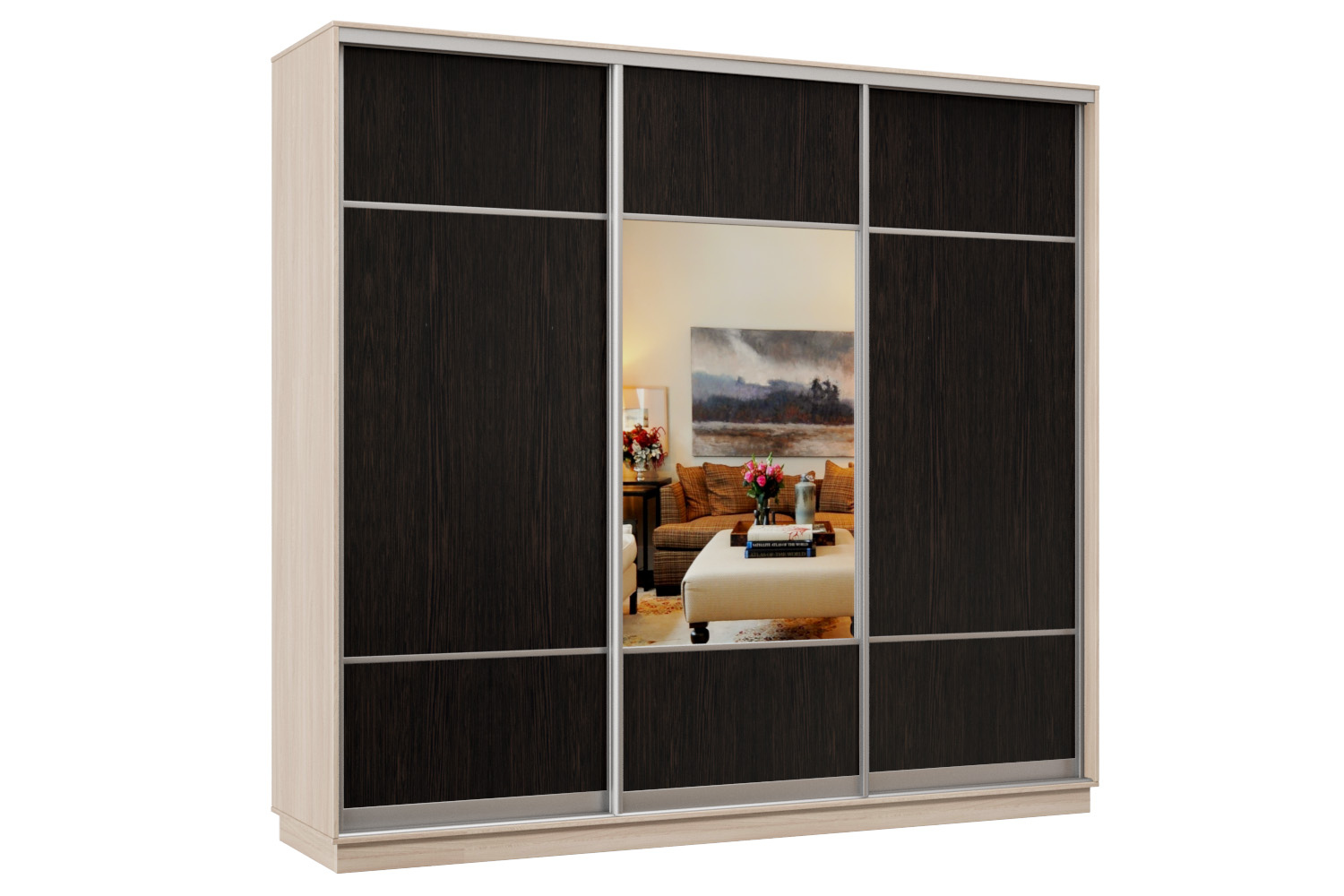 Шкаф-купе Премьер Лайт 59 (08;05;08) трехдверный (Ясень шимо светлый/Венге)