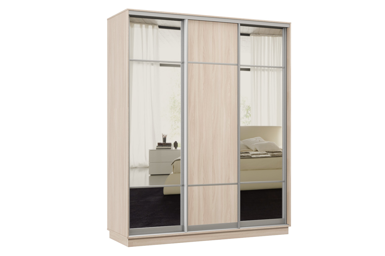 Шкаф-купе Премьер Лайт 23 (11;08;11) трехдверный (Ясень шимо светлый)