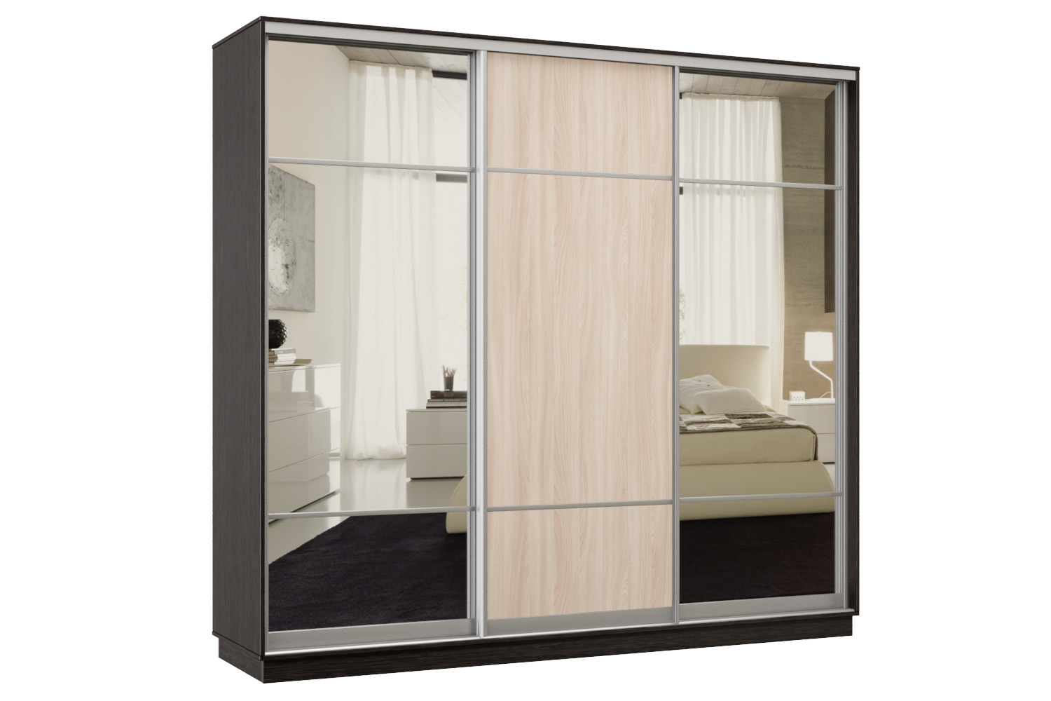 Шкаф-купе Премьер Лайт 57 (11;08;11) трехдверный (Венге/Ясень шимо светлый)