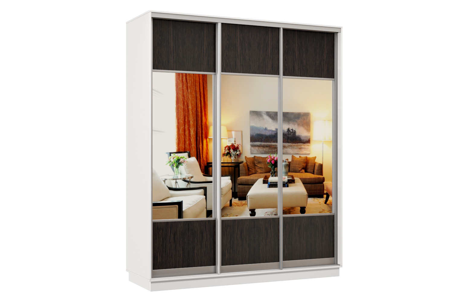 Шкаф-купе Премьер Лайт 35 (05;05;05) трехдверный (Белый/Венге Цаво)