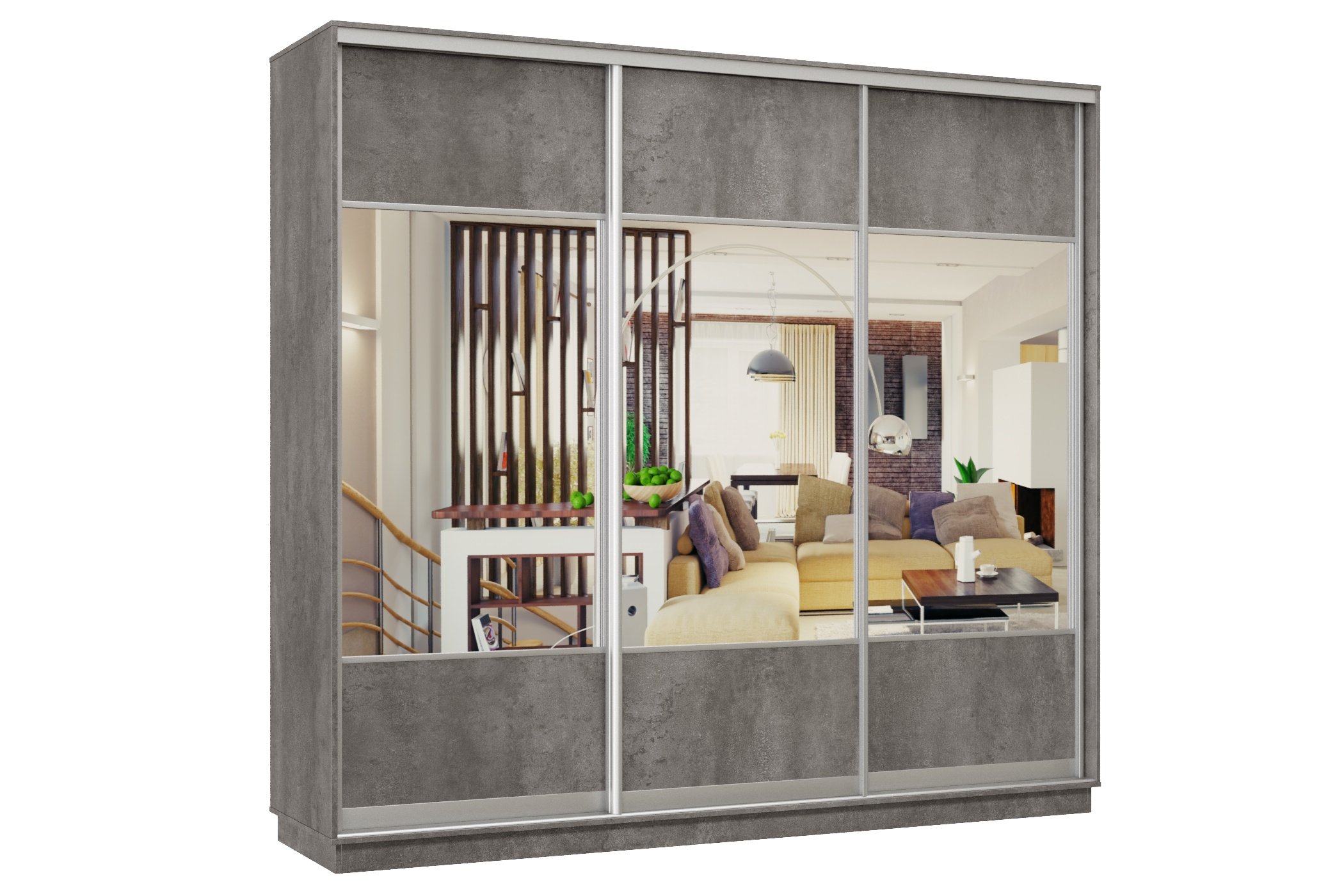 Шкаф-купе Премьер Лайт 57 (05;05;05) трехдверный (Бетон)