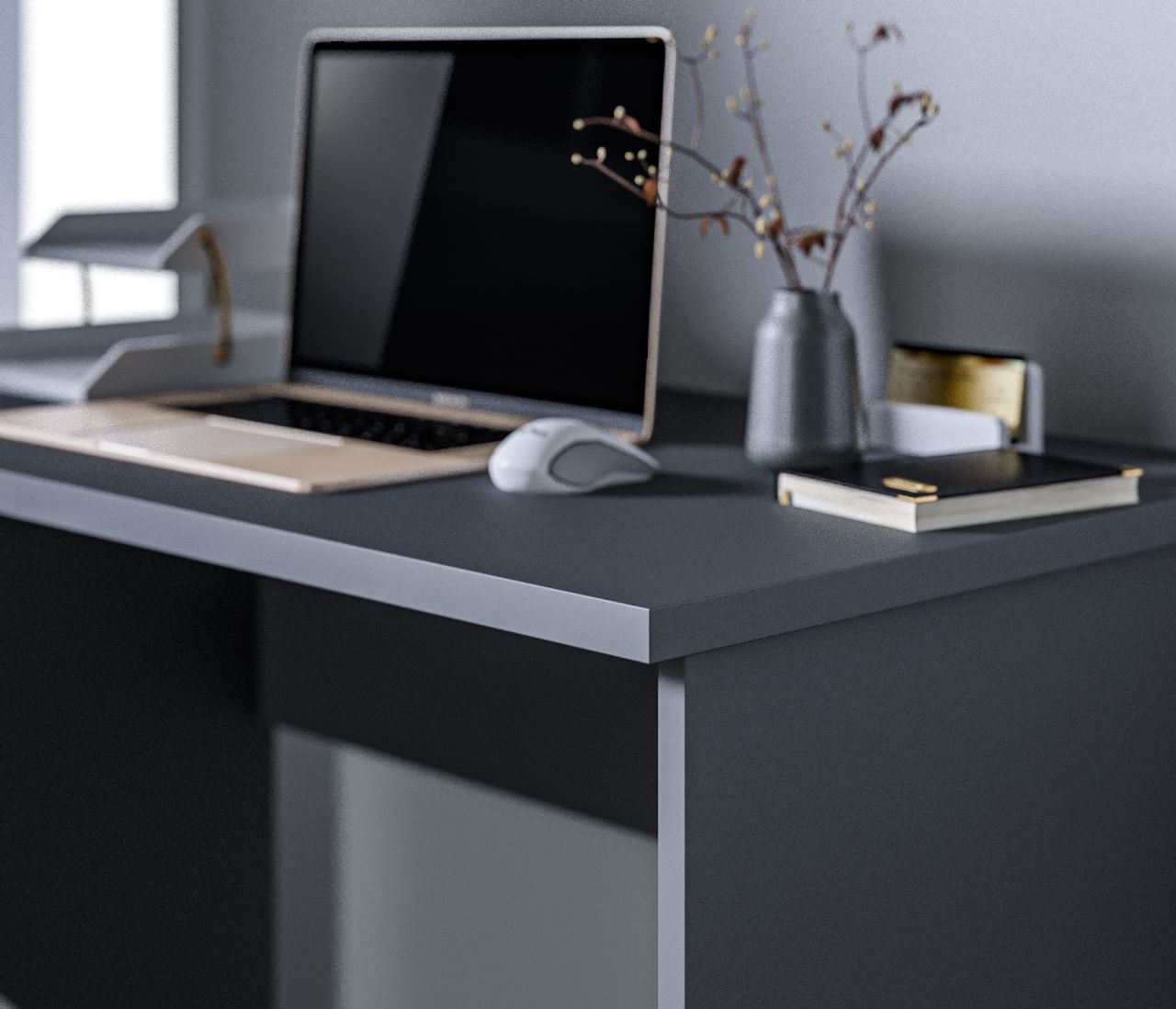 Габаритные размеры – ширина 90 см, высота 75 и глубина 50 см. Стол произведен из современного и экологичного материала ЛДСП. Минималистичный дизайн и цвет стола не создают ощущение громоздкости. Материал отделки легок в уходе.