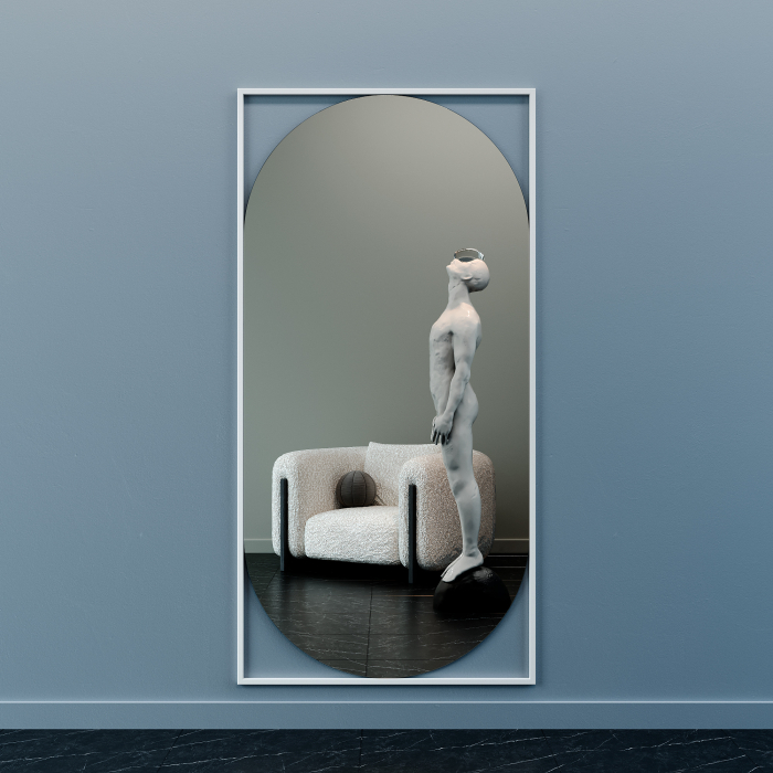 Дизайнерское настенное напольное зеркало GENGLASS Kvaden XL в металлической раме (Белый) Код I0000315824