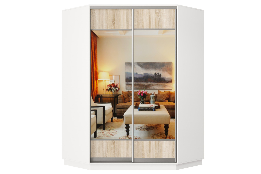 Шкаф-купе Премьер Лайт 71 угловой (05;05) двухдверный (Белый/дуб сонома)