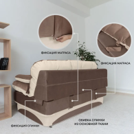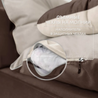 Наполнение верхнего матраса и декоративных подушек состоит из смеси крошки поролона с синтепухом, что не дает быструю усадку изделию и поддерживает его форму долгое время.