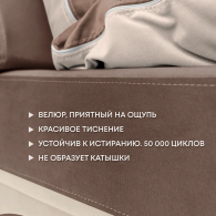Диван изготовлен из качественного велюра, который имеет 50 000 циклов по Мартиндейлу (по стандарту необходимо 20 000).