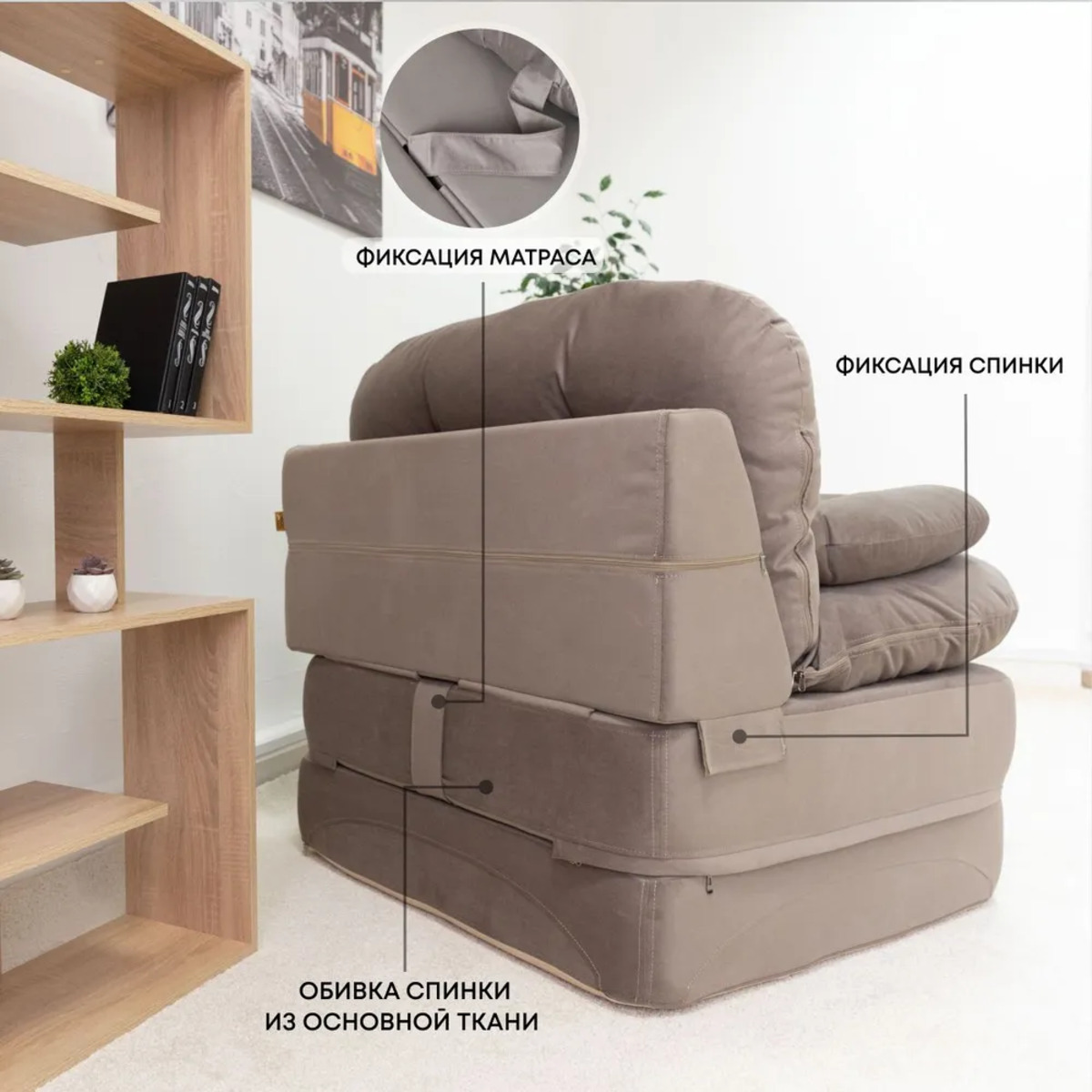 Бескаркасное кресло-кровать Клиффорд 900*950мм велюр (Какао) Код I0000376413