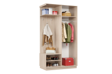 В комплекте 3 крючка для одежды. Используется штанга для одежды. Максимальная нагрузка до 12 кг. Задняя стенка - ДВП белая облагороженная.