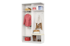 В комплекте 3 крючка для одежды. Используется штанга для одежды. Максимальная нагрузка до 12 кг. Задняя стенка - ДВП белая облагороженная.