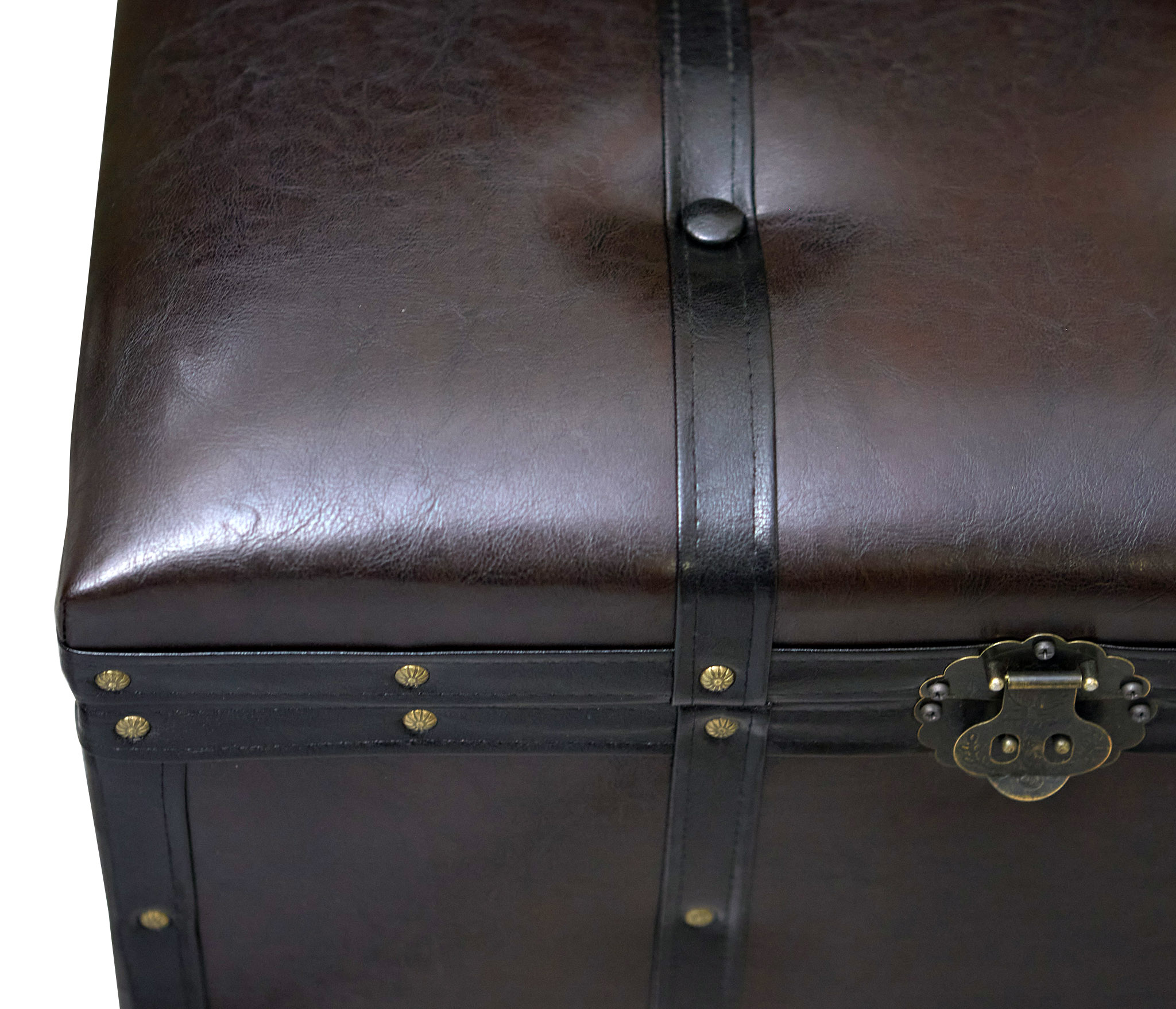 Банкетка с ящиком для хранения малая с ремнями представлена в виде напольного сундука в старинном классическом стиле. Пуфик удивительно красив и функционален: может использоваться и как пуф-банкетка и как объемный короб для хранения. Декорирован ремнями и металлическими бронзовыми гвоздями. Внутреннее пространство отделано спанбондом. Сундук стоит на пластиковых ножках. Материал обивки: эко-кожа благородного темно-шоколадного оттенка.Пуфик подойдет в прихожую, коридор, в спальню, в гостинную, в детскую, в кухню, в зал прекрасно впишется в любой интерьер офиса, дома или дачи. Пуф мягкий идеальный подарок мужчине или женщине на свадьбу, годовщину или юбилей. Подарок любимой, маме, жене, подруге. Сундук очень удобен в использовании в качестве пуфа или банкетки. Его крышка изготовлена из прочного материала, способного выдерживать большую вертикальную нагрузку до 200кг. Объемное внутреннее пространство банкетки, позволяет хранить различные предметы домашнего обихода и вещи. Элегантный пуфик банкетка будет служить местом для сидения и дополнительным местом для хранения. Пуфики удобны в качестве тумбы, прикроватного туалетного столика, полки, обувницы, стула, коробки для хранения. В ящик банкетки можно сложить обувь, книги, игрушки , постельное белье. Пуф с крышкой , банкетки разных цветов , размеров и фактур : большие, высокие, круглые, велюр, из рогожки, на ножках и без, из экокожи, ткани, с каретной стяжкой представлены в нашем магазине. Банкетку удобно использовать для сидения и в качестве подставки для ног или лежака для животных. Прочный каркас, качественные материалы, эксклюзивный дизайн, стильная обивка не оставят равнодушными взрослых и детей. Наполнитель для пуфа упругий поролон. Такой пуфик-банкетка альтернатива круглому пуфу, бескаркасному пуфу, отличная замена пуфа мешка.