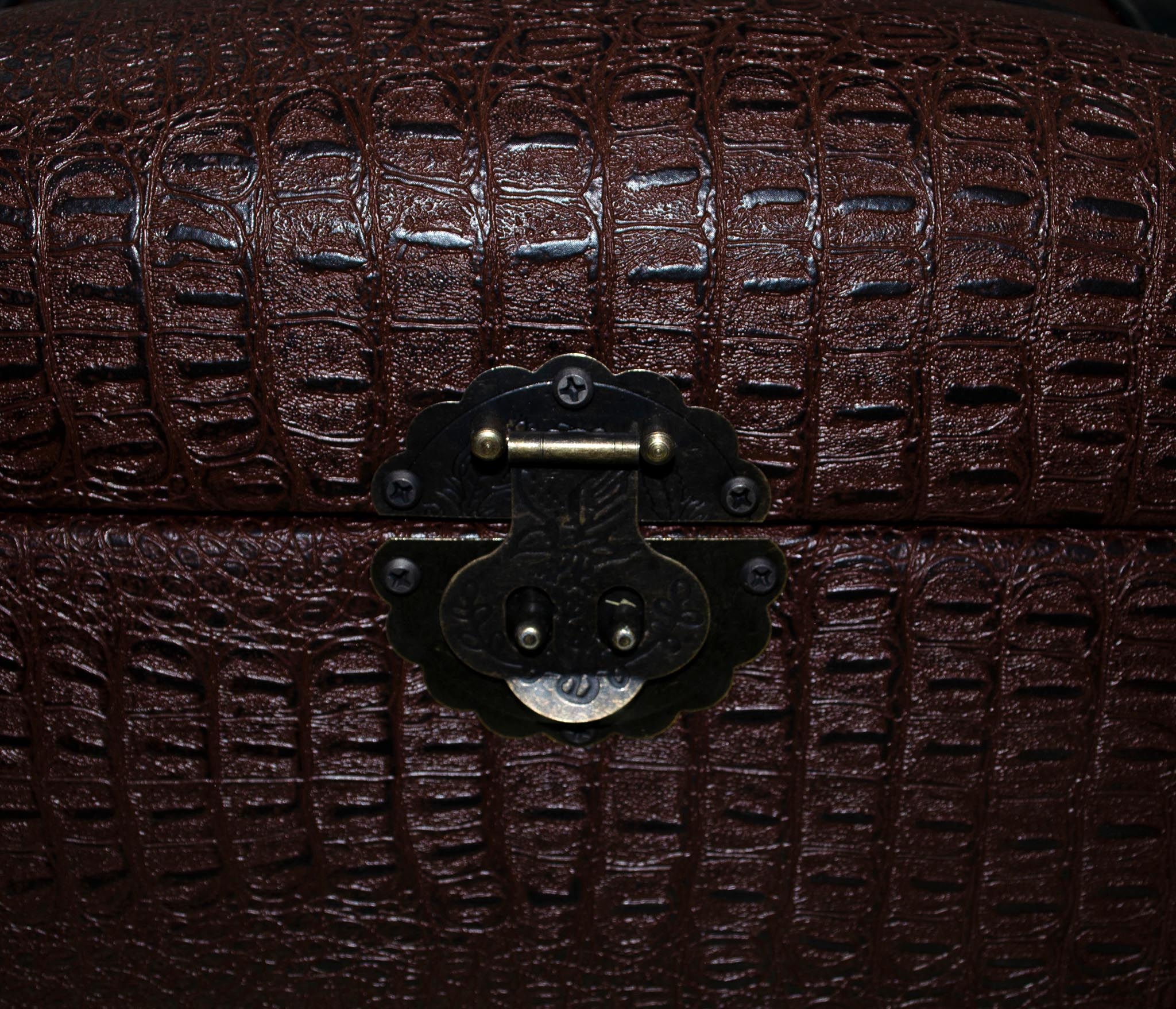 Банкетка "Алигатор" с ящиком для хранения представлена в классическом дизайне под "крокодиловую кожу" коричневого цвета. Мебель из такой кожи будет смотреться гармонично в любом интерьере дома или дачи- от классики до хай-тека. Сундук банкетка имеет пластиковые ножки и декоративный металлический замок. Пуфик подойдет в прихожую, коридор, в спальню, в гостинную, в детскую, в кухню, в зал прекрасно впишется в любой интерьер офиса, дома или дачи. Пуф мягкий идеальный подарок мужчине или женщине на свадьбу, годовщину или юбилей. Подарок любимой, маме, жене, подруге. Сундук очень удобен в использовании в качестве пуфа или банкетки. Его крышка изготовлена из прочного материала, способного выдерживать большую вертикальную нагрузку до 150 кг. Объемное внутреннее пространство банкетки, отделанное бежевым спанбондом, позволяет хранить различные предметы домашнего обихода и вещи. Элегантный пуфик банкетка будет служить местом для сидения и дополнительным местом для хранения. Пуфики удобны в качестве тумбы, прикроватного туалетного столика, полки, обувницы, стула, коробки для хранения. В ящик банкетки можно сложить обувь, книги, игрушки , постельное белье. Пуф с крышкой , банкетки разных цветов , размеров и фактур : большие, высокие, круглые, велюр, из рогожки, на ножках и без, из экокожи, ткани, с каретной стяжкой представлены в нашем магазине. Банкетку удобно использовать для сидения и в качестве подставки для ног или лежака для животных. Прочный каркас, качественные материалы, эксклюзивный дизайн, стильная обивка не оставят равнодушными взрослых и детей. Наполнитель для пуфа упругий поролон. Такой пуфик-банкетка альтернатива круглому пуфу, бескаркасному пуфу, отличная замена пуфа мешка.