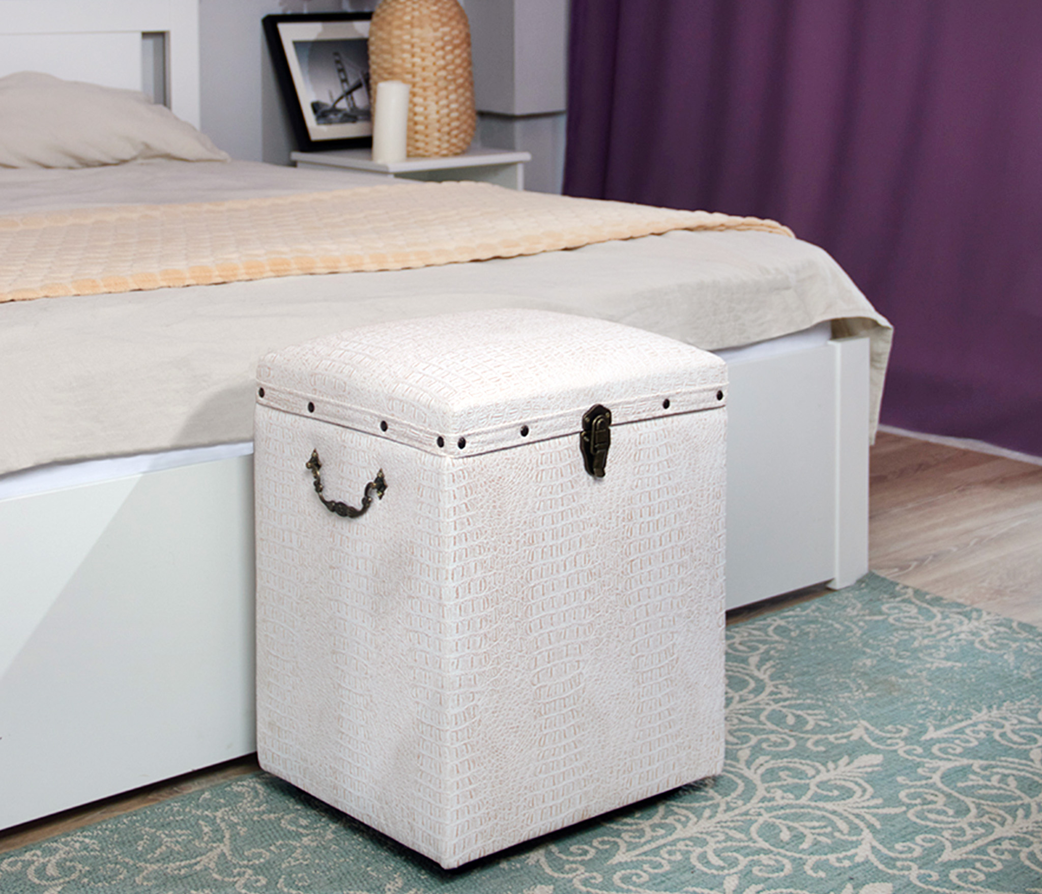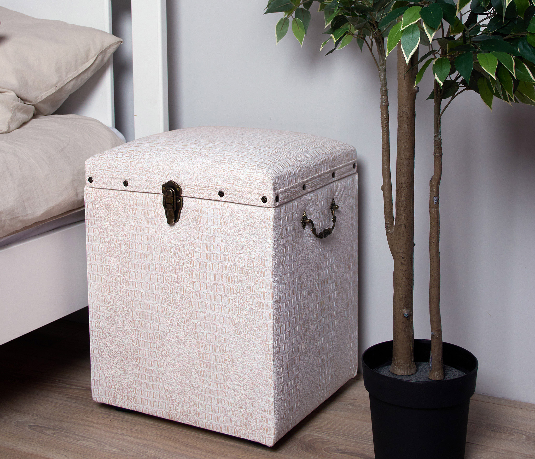 Банкетка ""Светлая"" с ящиком для хранения вертикальная. Пуфик обянут экокожей под ""крокодиловую кожу"" с перламутровым оттенком. Пуфик в доме это, прежде всего, удобство и комфорт для хозяина квартиры и его гостей, которые могут присесть на нее и переобуться. Нередко в коридоре для этой цели ставят стул или табурет. Но при наличии ящика, банкетка подходит для хранения обуви, средств по ее уходу, других принадлежностей. Этот предмет мебели станет дополнительным элементом декора. Внутреннее пространство банкетки отделано спанбондом. Домашний сундук пуф выглядит роскошно и презентабельно. Пуфик подойдет в прихожую, коридор, в спальню, в гостинную, в детскую, в кухню, в зал прекрасно впишется в любой интерьер офиса, дома или дачи. Пуф мягкий идеальный подарок мужчине или женщине на свадьбу, годовщину или юбилей. Подарок любимой, маме, жене, подруге. Сундук очень удобен в использовании в качестве пуфа или банкетки. Его крышка изготовлена из прочного материала, способного выдерживать большую вертикальную нагрузку до 150кг. Объемное внутреннее пространство банкетки позволяет хранить различные предметы домашнего обихода и вещи. Элегантный пуфик банкетка будет служить местом для сидения и дополнительным местом для хранения. Пуфики удобны в качестве тумбы, прикроватного туалетного столика, полки, обувницы, стула, коробки для хранения. В ящик банкетки можно сложить обувь, книги, игрушки , постельное белье. Пуф с крышкой , банкетки разных цветов , размеров и фактур : большие, высокие, круглые, велюр, из рогожки, на ножках и без, из экокожи, ткани, с каретной стяжкой представлены в нашем магазине. Банкетку удобно использовать для сидения и в качестве подставки для ног или лежака для животных. Прочный каркас, качественные материалы, эксклюзивный дизайн, стильная обивка не оставят равнодушными взрослых и детей. Наполнитель для пуфа упругий поролон. Такой пуфик-банкетка альтернатива круглому пуфу, бескаркасному пуфу, отличная замена пуфа мешка.