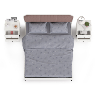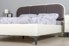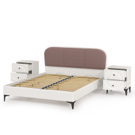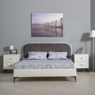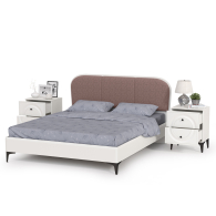 Кровать с мягкой спинкой 1600 с ортопедическим основанием Валенсия и две тумбочки - стильная светлая спальня в популярном стиле ар-деко.
