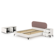 Мебель для спальни включает в себя двухспальную кровать, тумбу прикроватную и ТВ тумбу. Выбирая двуспальную кровать Валенсия 11.36.02 с мякгой спинкой со спальным местом 1600х2000 мм, Вы выбираете крепкий сон и уют. Декоративное изголовье кровати выполнен с мягким элементом. Обивка кровати Валенсия 11.36.02 выполнена из модной, удобной в эксплуатации ткани Велутто. Ортопедическое основание 1600х2000 мм. с гнутоклееными ламелями входит в комплект, матрас приобретаются отдельно. Углубление под матрас - 100 мм. Рекомендованная высота матраса от 100 до 220 мм. Максимально допустимая нагрузка на 1 спальное место - 100 кг. Тумба прикроватная Валенсия 13.291 оборудована двумя удобными выдвижными ящикам. Ящики тумбы установлены на направляющие скрытого монтажа с доводчиками. Современная тумба под ТВ Квадро 13.276 придётся по вкусу любителям чёрно-белых акцентов в оформлении интерьера. Сдержанный дизайн, классическое сочетание цвета и материалов выдержаны в минималистическом стиле. Особый акцент данной модели - наличие металлических деталей, опор из окрашенного металла и декоративные элементы на фасадной части тумбы из анодированного алюминия. Наличие таких прочных элементов в конструкции тумбы значительно увеличивают её надёжность, прочность и долговечность. Этому же способствует и основной материал тумбы - ламинированная ДСП толщиной 22 мм. и 16 мм. с кромкой ПВХ 2 мм. и 1 мм. Конструктивно тумба разделена на два отделения, каждое - за парой распашных дверей с одной полочкой внутри. Ширина дверей одинакова. Закреплены дверки на четырёхшарнирных петлях. Верхний горизонт оборудован вырезом для размещения проводов мультимедиа аппаратуры. Опоры регулируются по высоте, что позволяет компенсировать неровность пола, и наделены пластиковыми подпятниками, что сохранит Ваше напольное покрытие от повреждений. Мебель выполнена из экологически чистой ламинированной ДСП 16 мм, класса эмиссии Е1, детали обработаны ПВХ-кромкой. Визуально плита ДСП имеет глубокое тиснение шагрень, а белый цвет фасадов удачно подчёркивает его. Фасады выполнены из с матовой ПВХ-плёнкой. Такое решение делает мебель визуально более "мягкой", комфортной и расслабляющей, что особенно актуально для спальни. Установлена мебель Валенсия на высокие ножки, что делает конструкцию лёгкой и воздушной и практичной в плане уборки. В производстве спальни Валенсия использована фурнитура высоких стандартов. Поставляется в разобранном виде в надёжной упаковке, с комплектом сборочной фурнитуры и инструкцией по сборке.