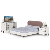 Кровать с мягкой спинкой 1600 с комодом Валенсия и тумбочкой два ящика - стильная светлая спальня в популярном стиле ар-деко.