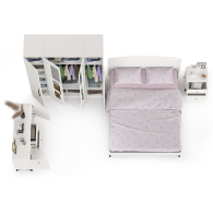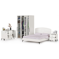 Валенсия Спальня № 31 состоит из двухспальной кровати, прикроватной тумбочки, шкафа 2-х дверного, двух шкафов-пеналов и широкого камода. Основным декоративным элементом является круг представленный фрезеровкой на фасаде в изголовье кровати. Выбирая двуспальную кровать Валенсия 11.36.01 со спальным местом 1600х2000 мм, Вы выбираете крепкий сон и уют. Ортопедическое основание 1600х2000 мм. с гнутоклееными ламелями входит в комплект, матрас приобретаются отдельно. Углубление под матрас - 100 мм. Рекомендованная высота матраса от 100 до 220 мм. Максимально допустимая нагрузка на 1 спальное место - 100 кг. Тумба прикроватная Валенсия 13.291 оборудована двумя удобными выдвижными ящикам. Шкаф оборудован за распашными дверями штангой для одежды на плечиках и антресольной и нижней полками. Декор шкафа для одежды 2-х дверного решён нестандартно и интересно. Зеркало накладывается изнутри фасада, проявляя таким образом сквозную ажурную фрезеровку. Внутреннее наполнение пенала (в комплекте 2 шт.) Вы определяете сами, есть возможность расположить внутри - 5 полочек или штангу для одежлы на плечиках и две полки верхнюю и нижнюю. Пять полок внутри шкафа-пенала позволят обустроить библиотеку, а штанга для одежды с 2-мя полками - мини-гардеробную. Распашная дверь закреплена четырёхшарнирных петлях, продлевающих время службы мебели. Широкий комод с распашными дверками по бокам и тремя выдвижными ящиками в центре - практичный бельевой отдел спальни. Мебель выполнена из экологически чистой ламинированной ДСП 16 мм, класса эмиссии Е1, детали обработаны ПВХ-кромкой. Визуально плита ДСП имеет глубокое тиснение шагрень, а белый цвет фасадов удачно подчёркивает его. Фасады выполнены из с матовой ПВХ-плёнкой. Такое решение делает мебель визуально более "мягкой", комфортной и расслабляющей, что особенно актуально для спальни. Установлена мебель Валенсия на высокие ножки, что делает конструкцию лёгкой и воздушной и практичной в плане уборки. В производстве спальни Валенсия использована фурнитура высоких стандартов. Ящики установлены на направляющие скрытого монтажа с доводчиками. Поставляется в разобранном виде в надёжной упаковке, с комплектом сборочной фурнитуры и инструкцией по сборке.