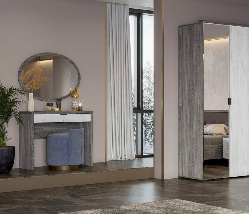 Новые современные цвета: черный ясень — это глубокий серый, легкий и одновременно динамичный цвет в сочетании с санторини белым — цвет с древесными линиями, создающими гармоничный контраст, наполняя пространство воздухом и природной энергией.