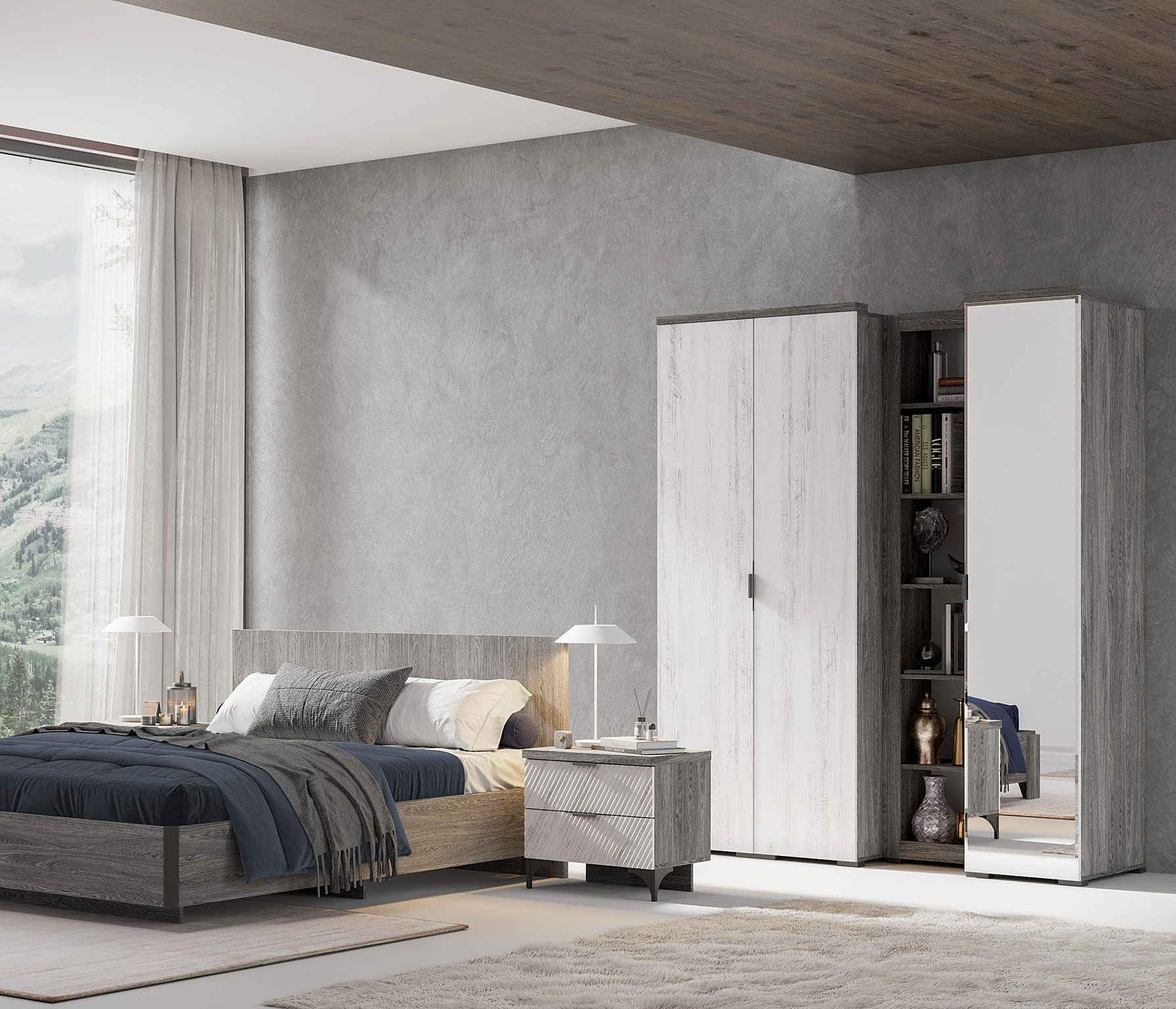 Новые современные цвета: черный ясень — это глубокий серый, легкий и одновременно динамичный цвет в сочетании с санторини белым — цвет с древесными линиями, создающими гармоничный контраст, наполняя пространство воздухом и природной энергией.