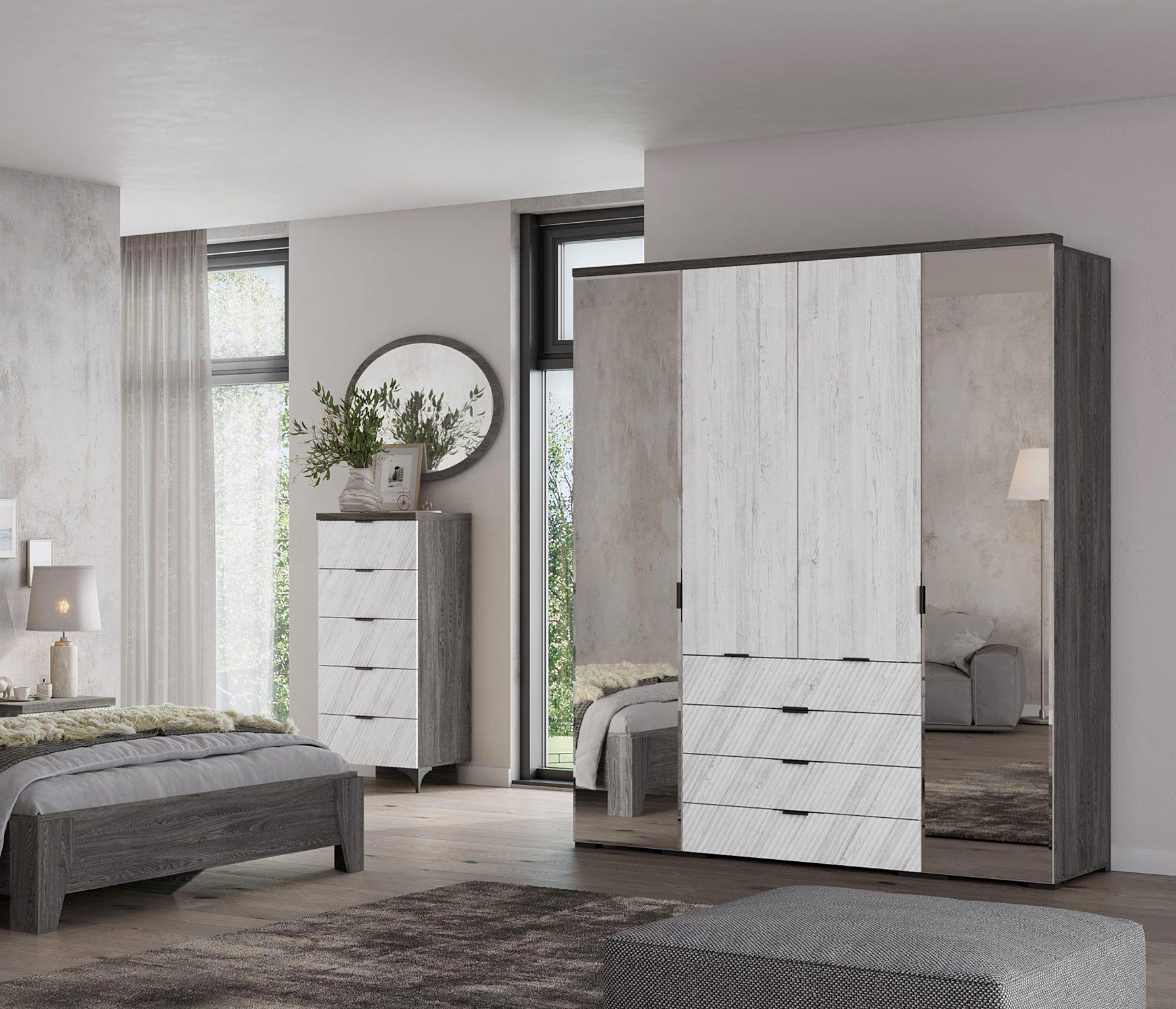 Новые современные цвета: черный ясень — это глубокий серый, легкий и одновременно динамичный цвет в сочетании с санторини белым — цвет с древесными линиями, создающими гармоничный контраст, наполняя пространство воздухом и природной энергией.