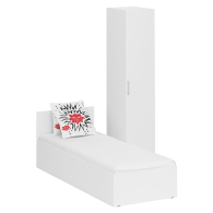Комплект состоит из односпальной кровати и пенала. Функциональность, компактность и простота формы - три слагаемые дизайнерской идеи кровати Стандарт 0800. Классическая геометрия и спокойный природный тон кровати поддержат базовый интерьер, легко сочетаясь с мебелью любого стиля. В комнату с такой нейтральной обстановкой легко добавить индивидуальности, расставив акценты с помощью креативных аксессуаров. Односпальная кровать Стандарт 800 - надёжная, с устойчивым основанием и удобной спинкой, идеально подходит для детской комнаты. Сп.м. 800х2000 мм, основание в комплекте (настил ДСП), матрас 800х2000 мм. приобретается отдельно. Определённый интерес кровать Стандарт 800 представляет и для обустройства гостиничных номеров, пансионатов, детских лагерей. Высокий шкаф-пенал, за распашной дверкой которого расположены четыре съёмные полки. Универсальная дверь - сторону открывания двери Вы определятете при сборке. Кровать односпальная 800 с пеналом Стандарт поможет создать универсальный интерьер, который будет жить вне времени и моды, без необходимости обновления. Элегантная простота и эргономичность кровати, в сочетании с идеальным качеством исполнения, обещают удовольствие на долгие годы. Кровать односпальная 800 с пеналом Стандарт выполнены из экологически чистой ламинированной ДСП с классом эмиссии Е1, допустимым для детской мебели. В производстве мебели использована фурнитура высоких стандартов и обработка деталей противоударной кромкой ПХВ. Поставляется мебель в разобранном виде в надёжной упаковке, с комплектом фурнитуры и инструкцией по сборке.