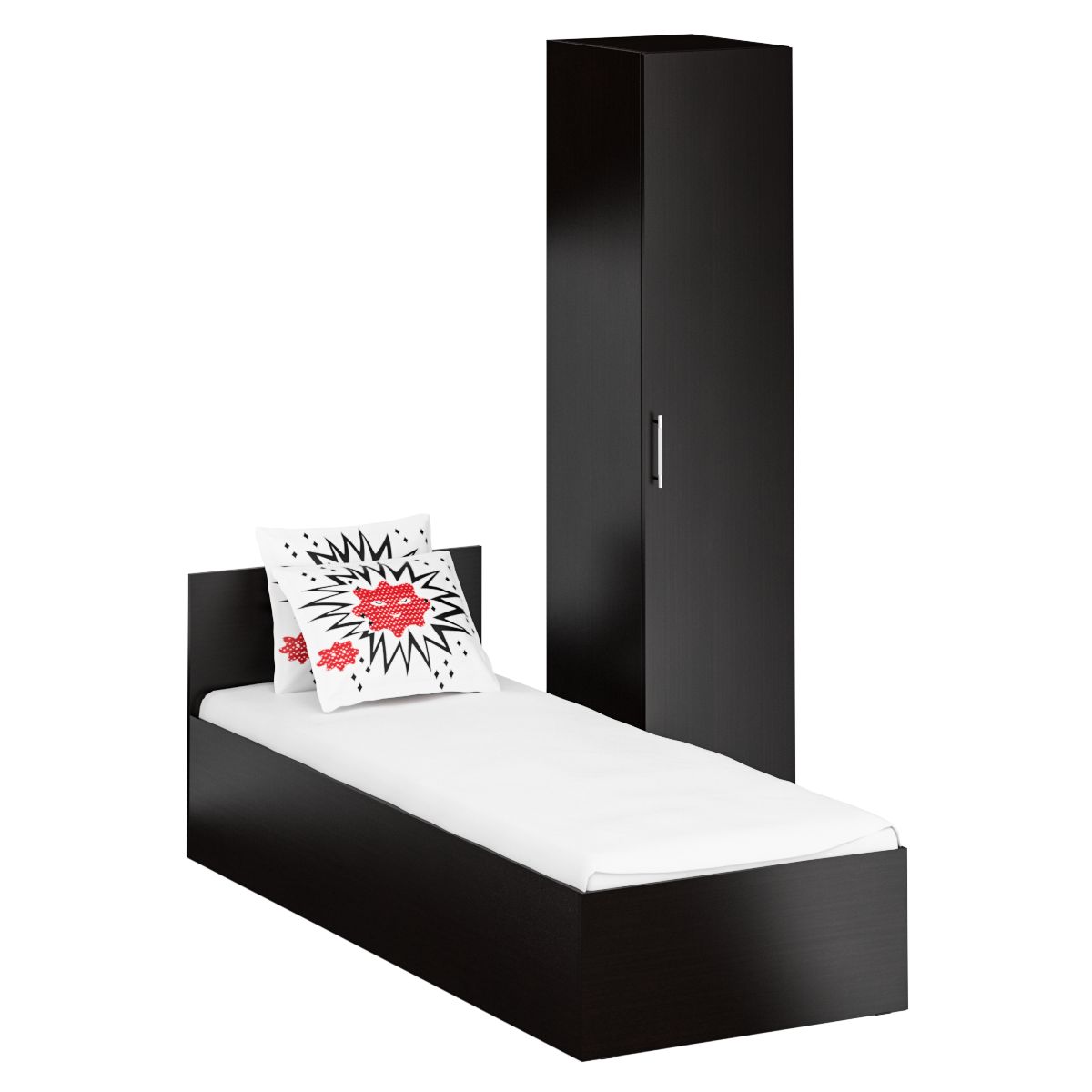 Комплект состоит из односпальной кровати и пенала. Функциональность, компактность и простота формы - три слагаемые дизайнерской идеи кровати Стандарт 0800. Классическая геометрия и спокойный природный тон кровати поддержат базовый интерьер, легко сочетаясь с мебелью любого стиля. В комнату с такой нейтральной обстановкой легко добавить индивидуальности, расставив акценты с помощью креативных аксессуаров. Односпальная кровать Стандарт 800 - надёжная, с устойчивым основанием и удобной спинкой, идеально подходит для детской комнаты. Сп.м. 800х2000 мм, основание в комплекте (настил ДСП), матрас 800х2000 мм. приобретается отдельно. Определённый интерес кровать Стандарт 800 представляет и для обустройства гостиничных номеров, пансионатов, детских лагерей. Высокий шкаф-пенал, за распашной дверкой которого расположены четыре съёмные полки. Универсальная дверь - сторону открывания двери Вы определятете при сборке. Кровать односпальная 800 с пеналом Стандарт поможет создать универсальный интерьер, который будет жить вне времени и моды, без необходимости обновления. Элегантная простота и эргономичность кровати, в сочетании с идеальным качеством исполнения, обещают удовольствие на долгие годы. Кровать односпальная 800 с пеналом Стандарт выполнены из экологически чистой ламинированной ДСП с классом эмиссии Е1, допустимым для детской мебели. В производстве мебели использована фурнитура высоких стандартов и обработка деталей противоударной кромкой ПХВ. Поставляется мебель в разобранном виде в надёжной упаковке, с комплектом фурнитуры и инструкцией по сборке.