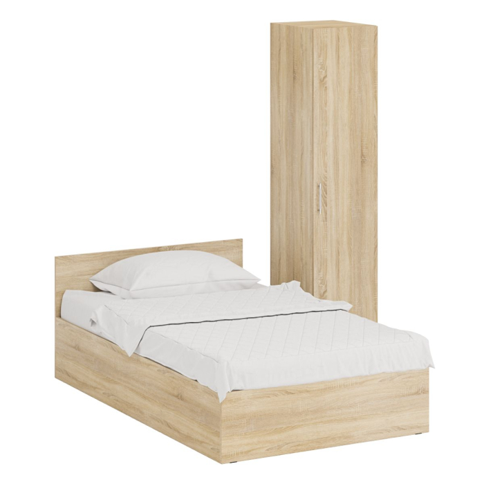 Комплект состоит из односпальной кровати и пенала. Функциональность, компактность и простота формы - три слагаемые дизайнерской идеи кровати Стандарт 1200. Классическая геометрия и спокойный природный тон кровати поддержат базовый интерьер, легко сочетаясь с мебелью любого стиля. В комнату с такой нейтральной обстановкой легко добавить индивидуальности, расставив акценты с помощью креативных аксессуаров. Односпальная кровать Стандарт 1200 - надёжная, с устойчивым основанием и удобной спинкой, идеально подходит для детской комнаты. Сп.м. 1200х2000 мм, основание в комплекте (настил ДСП), матрас 1200х2000 мм. приобретается отдельно. Определённый интерес кровать Стандарт 1200 представляет и для обустройства гостиничных номеров, пансионатов, детских лагерей. Высокий шкаф-пенал, за распашной дверкой которого расположены четыре съёмные полки. Универсальная дверь - сторону открывания двери Вы определятете при сборке. Кровать односпальная 1200 с пеналом Стандарт поможет создать универсальный интерьер, который будет жить вне времени и моды, без необходимости обновления. Элегантная простота и эргономичность кровати, в сочетании с идеальным качеством исполнения, обещают удовольствие на долгие годы. Кровать односпальная 1200 с пеналом Стандарт выполнены из экологически чистой ламинированной ДСП с классом эмиссии Е1, допустимым для детской мебели. В производстве мебели использована фурнитура высоких стандартов и обработка деталей противоударной кромкой ПХВ. Поставляется мебель в разобранном виде в надёжной упаковке, с комплектом фурнитуры и инструкцией по сборке.