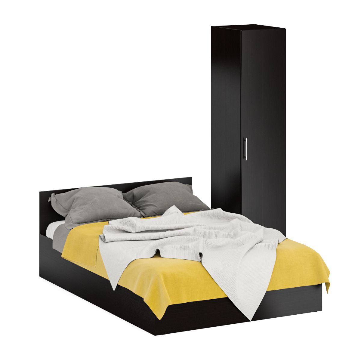 Комплект состоит из двуспальной кровати и пенала. Функциональность, компактность и простота формы - три слагаемые дизайнерской идеи кровати Стандарт 1400. Классическая геометрия и спокойный природный тон кровати поддержат базовый интерьер, легко сочетаясь с мебелью любого стиля. В комнату с такой нейтральной обстановкой легко добавить индивидуальности, расставив акценты с помощью креативных аксессуаров. Односпальная кровать Стандарт 1400 - надёжная, с устойчивым основанием и удобной спинкой, идеально подходит для детской комнаты. Сп.м. 1400х2000 мм, основание в комплекте (настил ДСП), матрас 1400х2000 мм. приобретается отдельно. Определённый интерес кровать Стандарт 1400 представляет и для обустройства гостиничных номеров, пансионатов, детских лагерей. Высокий шкаф-пенал, за распашной дверкой которого расположены четыре съёмные полки. Универсальная дверь - сторону открывания двери Вы определятете при сборке. Кровать односпальная 1400 с пеналом Стандарт поможет создать универсальный интерьер, который будет жить вне времени и моды, без необходимости обновления. Элегантная простота и эргономичность кровати, в сочетании с идеальным качеством исполнения, обещают удовольствие на долгие годы. Кровать односпальная 1400 с пеналом Стандарт выполнены из экологически чистой ламинированной ДСП с классом эмиссии Е1, допустимым для детской мебели. В производстве мебели использована фурнитура высоких стандартов и обработка деталей противоударной кромкой ПХВ. Поставляется мебель в разобранном виде в надёжной упаковке, с комплектом фурнитуры и инструкцией по сборке.