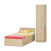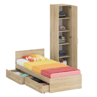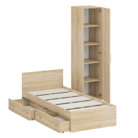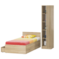 Комплект состоит из односпальной с ящиками кровати и пенала. Функциональность, компактность и простота формы - три слагаемые дизайнерской идеи кровати Стандарт 900. Классическая геометрия и спокойный природный тон кровати поддержат базовый интерьер, легко сочетаясь с мебелью любого стиля. В комнату с такой нейтральной обстановкой легко добавить индивидуальности, расставив акценты с помощью креативных аксессуаров. Односпальная кровать с ящиками 900 Стандарт - надёжная, с устойчивым основанием и удобной спинкой, идеально подходит для детской комнаты. Сп.м. 900х2000 мм, основание в комплекте (настил ДСП), матрас 900х2000 мм. приобретается отдельно. В основании кровати расположены два вместительных ящика для хранения постельных принадлежностей и личных вещей. Определённый интерес мебель 900 Стандарт представляет и для обустройства гостиничных номеров, пансионатов, детских лагерей. Высокий шкаф-пенал, за распашной дверкой которого расположены четыре съёмные полки. Универсальная дверь - сторону открывания двери Вы определятете при сборке. Односпальная кровать с ящиками 900 с пеналом Стандарт поможет создать универсальный интерьер, который будет жить вне времени и моды, без необходимости обновления. Элегантная простота и эргономичность кровати, в сочетании с идеальным качеством исполнения, обещают удовольствие на долгие годы. Односпальная кровать с ящиками 900 с пеналом Стандарт выполнены из экологически чистой ламинированной ДСП с классом эмиссии Е1, допустимым для детской мебели. В производстве мебели использована фурнитура высоких стандартов и обработка деталей противоударной кромкой ПХВ. Поставляется мебель в разобранном виде в надёжной упаковке, с комплектом фурнитуры и инструкцией по сборке.