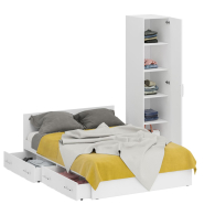 Комплект состоит из двуспальной кровати с ящиками и пенала. Функциональность, компактность и простота формы - три слагаемые дизайнерской идеи кровати Стандарт. Классическая геометрия и спокойный природный тон кровати поддержат базовый интерьер, легко сочетаясь с мебелью любого стиля. В комнату с такой нейтральной обстановкой легко добавить индивидуальности, расставив акценты с помощью креативных аксессуаров. Двуспальная кровать с ящиками 1400 - надёжная, с устойчивым основанием и удобной спинкой, идеально подходит для детской комнаты. Сп.м. 1400х2000 мм, основание в комплекте (настил ДСП), матрас 1400х2000 мм. приобретается отдельно. В основании кровати расположены два вместительных ящика для хранения постельных принадлежностей и личных вещей. Определённый интерес мебель Стандарт представляет и для обустройства гостиничных номеров, пансионатов, детских лагерей. Высокий шкаф-пенал, за распашной дверкой которого расположены четыре съёмные полки. Универсальная дверь - сторону открывания двери Вы определятете при сборке. Двуспальная кровать с ящиками 1400 с пеналом Стандарт поможет создать универсальный интерьер, который будет жить вне времени и моды, без необходимости обновления. Элегантная простота и эргономичность кровати, в сочетании с идеальным качеством исполнения, обещают удовольствие на долгие годы. Двуспальная кровать с ящиками 1400 с пеналом Стандарт выполнены из экологически чистой ламинированной ДСП с классом эмиссии Е1, допустимым для детской мебели. В производстве мебели использована фурнитура высоких стандартов и обработка деталей противоударной кромкой ПХВ. Поставляется мебель в разобранном виде в надёжной упаковке, с комплектом фурнитуры и инструкцией по сборке.