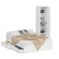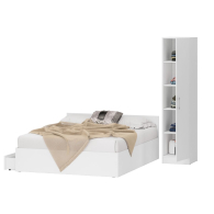 Комплект состоит из двуспальной кровати с ящиками и пенала. Функциональность, компактность и простота формы - три слагаемые дизайнерской идеи кровати Стандарт. Классическая геометрия и спокойный природный тон кровати поддержат базовый интерьер, легко сочетаясь с мебелью любого стиля. В комнату с такой нейтральной обстановкой легко добавить индивидуальности, расставив акценты с помощью креативных аксессуаров. Двуспальная кровать с ящиками 1600 - надёжная, с устойчивым основанием и удобной спинкой, идеально подходит для детской комнаты. Сп.м. 1600х2000 мм, основание в комплекте (настил ДСП), матрас 1600х2000 мм. приобретается отдельно. В основании кровати расположены два вместительных ящика для хранения постельных принадлежностей и личных вещей. Определённый интерес мебель Стандарт представляет и для обустройства гостиничных номеров, пансионатов, детских лагерей. Высокий шкаф-пенал, за распашной дверкой которого расположены четыре съёмные полки. Универсальная дверь - сторону открывания двери Вы определятете при сборке. Двуспальная кровать с ящиками 1600 с пеналом Стандарт поможет создать универсальный интерьер, который будет жить вне времени и моды, без необходимости обновления. Элегантная простота и эргономичность кровати, в сочетании с идеальным качеством исполнения, обещают удовольствие на долгие годы. Двуспальная кровать с ящиками 1600 с пеналом Стандарт выполнены из экологически чистой ламинированной ДСП с классом эмиссии Е1, допустимым для детской мебели. В производстве мебели использована фурнитура высоких стандартов и обработка деталей противоударной кромкой ПХВ. Поставляется мебель в разобранном виде в надёжной упаковке, с комплектом фурнитуры и инструкцией по сборке.