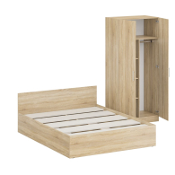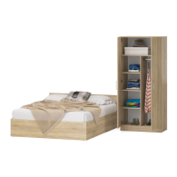 Комплект состоит из двуспальной кровати и шкафа 2-х створчатого. Функциональность, компактность и простота формы - три слагаемые дизайнерской идеи кровати Стандарт. Классическая геометрия и спокойный природный тон кровати поддержат базовый интерьер, легко сочетаясь с мебелью любого стиля. В комнату с такой нейтральной обстановкой легко добавить индивидуальности, расставив акценты с помощью креативных аксессуаров. Кровать Стандарт - надёжная, с устойчивым основанием и удобной спинкой, идеально подходит для детской комнаты. Сп.м. 00х2000 мм, основание в комплекте (настил ДСП), матрас 00х2000 мм. приобретается отдельно. Определённый интерес мебель Стандарт представляет и для обустройства гостиничных номеров, пансионатов, детских лагерей. За распашными дверками шкафа расположены отделение со штангой для одежды на плечиках и антресольной полкой с одной стороны, и нишей с тремя полками с другой. Кровать двуспальная 1600 со шкафом для одежды 2-х створчатым Стандарт поможет создать универсальный интерьер, который будет жить вне времени и моды, без необходимости обновления. Элегантная простота и эргономичность кровати, в сочетании с идеальным качеством исполнения, обещают удовольствие на долгие годы. Выполнены из экологически чистой ламинированной ДСП с классом эмиссии Е1, допустимым для детской мебели. В производстве мебели использована фурнитура высоких стандартов и обработка деталей противоударной кромкой ПХВ. Поставляется мебель в разобранном виде в надёжной упаковке, с комплектом фурнитуры и инструкцией по сборке.