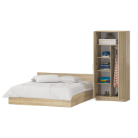 Комплект состоит из двуспальной кровати и шкафа 2-х створчатого. Функциональность, компактность и простота формы - три слагаемые дизайнерской идеи кровати Стандарт. Классическая геометрия и спокойный природный тон кровати поддержат базовый интерьер, легко сочетаясь с мебелью любого стиля. В комнату с такой нейтральной обстановкой легко добавить индивидуальности, расставив акценты с помощью креативных аксессуаров. Кровать Стандарт - надёжная, с устойчивым основанием и удобной спинкой, идеально подходит для детской комнаты. Сп.м. 1800х2000 мм, основание в комплекте (настил ДСП), матрас 1800х2000 мм. приобретается отдельно. Определённый интерес мебель Стандарт представляет и для обустройства гостиничных номеров, пансионатов, детских лагерей. За распашными дверками шкафа расположены отделение со штангой для одежды на плечиках и антресольной полкой с одной стороны, и нишей с тремя полками с другой. Кровать двуспальная 1800 со шкафом для одежды 2-х створчатым Стандарт поможет создать универсальный интерьер, который будет жить вне времени и моды, без необходимости обновления. Элегантная простота и эргономичность кровати, в сочетании с идеальным качеством исполнения, обещают удовольствие на долгие годы. Кровать двуспальная 1800 со шкафом для одежды 2-х створчатым Стандарт выполнены из экологически чистой ламинированной ДСП с классом эмиссии Е1, допустимым для детской мебели. В производстве мебели использована фурнитура высоких стандартов и обработка деталей противоударной кромкой ПХВ. Поставляется мебель в разобранном виде в надёжной упаковке, с комплектом фурнитуры и инструкцией по сборке.
