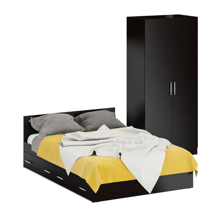 Двуспальная кровать с ящиками 1400 со шкафом для одежды 2-х створчатым Стандарт - эталон практичности для небольшой спальни!