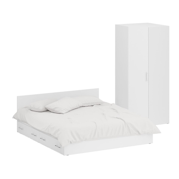 Отзывы о Столплит Двуспальная Кровать с ящиками 1800 с угловым шкафом Стандарт Белый