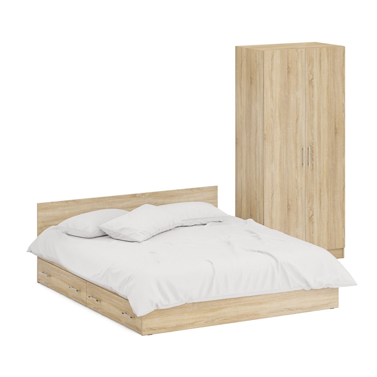 Отзывы о Столплит Двуспальная Кровать с ящиками 1800 со шкафом для одежды 2-х створчатым Стандарт Дуб Сонома