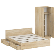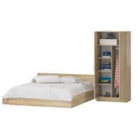 Комплект состоит из двуспальной кровати с ящиками и шкафа 2-х створчатого. Функциональность, компактность и простота формы - три слагаемые дизайнерской идеи кровати Стандарт. Классическая геометрия и спокойный природный тон кровати поддержат базовый интерьер, легко сочетаясь с мебелью любого стиля. В комнату с такой нейтральной обстановкой легко добавить индивидуальности, расставив акценты с помощью креативных аксессуаров. Кровать Стандарт - надёжная, с устойчивым основанием и удобной спинкой, идеально подходит для детской комнаты. Сп.м. 1800х2000 мм, основание в комплекте (настил ДСП), матрас 1800х2000 мм. приобретается отдельно. В основании кровати расположены два вместительных ящика для хранения постельных принадлежностей и личных вещей. Определённый интерес мебель Стандарт представляет и для обустройства гостиничных номеров, пансионатов, детских лагерей. За распашными дверками шкафа расположены отделение со штангой для одежды на плечиках и антресольной полкой с одной стороны, и нишей с тремя полками с другой. Двуспальная кровать с ящиками 1800 со шкафом для одежды 2-х створчатым Стандарт поможет создать универсальный интерьер, который будет жить вне времени и моды, без необходимости обновления. Элегантная простота и эргономичность кровати, в сочетании с идеальным качеством исполнения, обещают удовольствие на долгие годы. Двуспальная кровать с ящиками 1800 со шкафом для одежды 2-х створчатым Стандарт выполнены из экологически чистой ламинированной ДСП с классом эмиссии Е1, допустимым для детской мебели. В производстве мебели использована фурнитура высоких стандартов и обработка деталей противоударной кромкой ПХВ. Поставляется мебель в разобранном виде в надёжной упаковке, с комплектом фурнитуры и инструкцией по сборке.