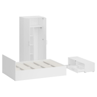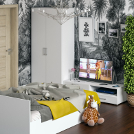 Спальня Стандарт № 3 состоит из двухспальной кровати, шкафа 2-х створчатого и тумбы под ТВ. Функциональность, компактность и простота формы - три слагаемые дизайнерской идеи спален Стандарт. Классическая геометрия и спокойный природный тон мебели Стандарт поддержат базовый интерьер, легко сочетаясь с мебелью любого стиля. В комнату с такой нейтральной обстановкой легко добавить индивидуальности, расставив акценты с помощью креативных аксессуаров. Кровать Стандарт - надёжная, с устойчивым основанием и удобной спинкой, идеально подходит для детской комнаты. Сп.м. 1400х2000 мм, основание в комплекте (настил ДСП), матрас 1400х2000 мм. приобретается отдельно. Определённый интерес мебель Стандарт представляет и для обустройства гостиничных номеров, пансионатов, детских лагерей. За распашными дверками шкафа для одежды расположены отделение со штангой для одежды на плечиках и антресольной полкой с одной стороны, и нишей с тремя полками с другой. Тумба под ТВ придётся по вкусу любителям стильных элементов мебели в оформлении интерьера. Особый акцент данной модели - глянцевое покрытие фасадов, выполненных из МДФ 16 мм. с торцевой фрезеровкой в виде фацета и геометрической фрезеровкой откидной дверки. Линейный декор тумбы подчёркнут ручками-рейлингами, имеющих сочетанное хромированно-матовое покрытие. Конструктивно тумба разделена на два одинаковой ширины отделения. Слева расположена закрытая откидной дверкой ниша, справа - открытая ниша и выдвижной ящик. Установлена тумба на плоские, прочные и надёжные прямоугольные ножки. Пластиковые накладки на ножках защитят Ваше напольное покрытие от механических повреждений. Спальня Стандарт № 3 имеет универсальный интерьер, который будет жить вне времени и моды, без необходимости обновления. Элегантная простота и эргономичность кровати, в сочетании с идеальным качеством исполнения, обещают удовольствие на долгие годы. Спальня Стандарт № 3 выполнен из экологически чистой ламинированной ДСП с классом эмиссии Е1, допустимым для детской мебели. В производстве мебели использована фурнитура высоких стандартов и обработка деталей противоударной кромкой ПХВ. Поставляется мебель в разобранном виде в надёжной упаковке, с комплектом фурнитуры и инструкцией по сборке.