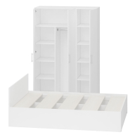 Спальный гарнитур № 1 состоит из двухспальной кровати, 2-х створчатого шкафа для одежды и пенала, объединенных в единый блок. Функциональность, компактность и простота формы - три слагаемые дизайнерской идеи спален Стандарт. Классическая геометрия и спокойный природный тон мебели Стандарт поддержат базовый интерьер, легко сочетаясь с мебелью любого стиля. В комнату с такой нейтральной обстановкой легко добавить индивидуальности, расставив акценты с помощью креативных аксессуаров. Кровать Стандарт - надёжная, с устойчивым основанием и удобной спинкой, идеально подходит для детской комнаты. Сп.м. 1400х2000 мм, основание в комплекте (настил ДСП), матрас 1400х2000 мм. приобретается отдельно. Определённый интерес мебель Стандарт представляет и для обустройства гостиничных номеров, пансионатов, детских лагерей. За распашными дверками шкафа для одежды расположены отделение со штангой для одежды на плечиках и антресольной полкой с одной стороны, и нишей с тремя полками с другой. Высокий пенал, за распашной дверкой которого расположены четыре съёмные полки. Универсальная дверь - сторону открывания двери Вы определятете при сборке. Спальный гарнитур № 1 имеет универсальный интерьер, который будет жить вне времени и моды, без необходимости обновления. Элегантная простота и эргономичность кровати, в сочетании с идеальным качеством исполнения, обещают удовольствие на долгие годы. Спальный гарнитур № 1 выполнен из экологически чистой ламинированной ДСП с классом эмиссии Е1, допустимым для детской мебели. В производстве мебели использована фурнитура высоких стандартов и обработка деталей противоударной кромкой ПХВ. Поставляется мебель в разобранном виде в надёжной упаковке, с комплектом фурнитуры и инструкцией по сборке.