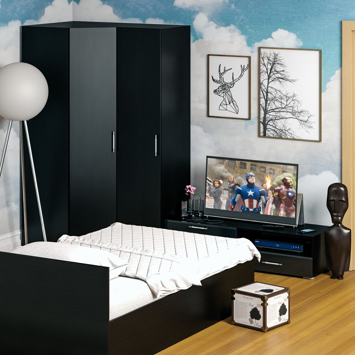 Мебель для спальни Стандарт № 4 состоит из односпальной кровати, объединенных в единый блок углового шкафа и пенала, и тумбы под ТВ. Функциональность, компактность и простота формы - три слагаемые дизайнерской идеи спален Стандарт. Классическая геометрия и спокойный природный тон мебели Стандарт поддержат базовый интерьер, легко сочетаясь с мебелью любого стиля. В комнату с такой нейтральной обстановкой легко добавить индивидуальности, расставив акценты с помощью креативных аксессуаров. Кровать Стандарт - надёжная, с устойчивым основанием и удобной спинкой, идеально подходит для детской комнаты. Сп.м. 1200х2000 мм, основание в комплекте (настил ДСП), матрас 1200х2000 мм. приобретается отдельно. Определённый интерес мебель Стандарт представляет и для обустройства гостиничных номеров, пансионатов, детских лагерей. Гардеробный блок представлен угловым шкафом и пеналом. За распашной дверкой шкафа углового расположены два отделения - со штангой для одежды на плечиках и антресольной полкой с одной стороны, и нишей с тремя полками с другой. Универсальная сборка - сторону открывания двери и располажение отделений внутри шкафа - Вы определятете при сборке. Боковина шкафа углового для соединения с другой мебелью имеет глубину 52 см. Высокий пенал, за распашной дверкой которого расположены четыре съёмные полки. Универсальная дверь - сторону открывания двери Вы определятете при сборке. Тумба под ТВ придётся по вкусу любителям стильных элементов мебели в оформлении интерьера. Особый акцент данной модели - глянцевое покрытие фасадов, выполненных из МДФ 16 мм. с торцевой фрезеровкой в виде фацета и геометрической фрезеровкой откидной дверки. Линейный декор тумбы подчёркнут ручками-рейлингами, имеющих сочетанное хромированно-матовое покрытие. Конструктивно тумба разделена на два одинаковой ширины отделения. Слева расположена закрытая откидной дверкой ниша, справа - открытая ниша и выдвижной ящик. Установлена тумба на плоские, прочные и надёжные прямоугольные ножки. Пластиковые накладки на ножках защитят Ваше напольное покрытие от механических повреждений. Мебель для спальни Стандарт № 4 имеет универсальный интерьер, который будет жить вне времени и моды, без необходимости обновления. Элегантная простота и эргономичность кровати, в сочетании с идеальным качеством исполнения, обещают удовольствие на долгие годы. Мебель для спальни Стандарт № 4 выполнена из экологически чистой ламинированной ДСП с классом эмиссии Е1, допустимым для детской мебели. В производстве мебели использована фурнитура высоких стандартов и обработка деталей противоударной кромкой ПХВ. Поставляется мебель в разобранном виде в надёжной упаковке, с комплектом фурнитуры и инструкцией по сборке.