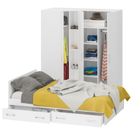 Гарнитур Спальный № 2 состоит из двухспальной кровати с ящиками и двух шкафов объединенных в единый блок - 2-х створчатого и углового. Функциональность, компактность и простота формы - три слагаемые дизайнерской идеи спален Стандарт. Классическая геометрия и спокойный природный тон мебели Стандарт поддержат базовый интерьер, легко сочетаясь с мебелью любого стиля. В комнату с такой нейтральной обстановкой легко добавить индивидуальности, расставив акценты с помощью креативных аксессуаров. Кровать Стандарт - надёжная, с устойчивым основанием и удобной спинкой, идеально подходит для детской комнаты. Сп.м. 1400х2000 мм, основание в комплекте (настил ДСП), матрас 1400х2000 мм. приобретается отдельно. В основании кровати расположены два вместительных ящика для хранения постельных принадлежностей и личных вещей. Определённый интерес мебель Стандарт представляет и для обустройства гостиничных номеров, пансионатов, детских лагерей. За распашными дверками шкафа для одежды расположены отделение со штангой для одежды на плечиках и антресольной полкой с одной стороны, и нишей с тремя полками с другой. За распашной дверкой шкафа углового расположены два отделения - со штангой для одежды на плечиках и антресольной полкой с одной стороны, и нишей с тремя полками с другой. Универсальная сборка - сторону открывания двери и располажение отделений внутри шкафа - Вы определятете при сборке. Боковина шкафа углового для соединения с другой мебелью имеет глубину 52 см. Гарнитур Спальный № 2 имеет универсальный интерьер, который будет жить вне времени и моды, без необходимости обновления. Элегантная простота и эргономичность кровати, в сочетании с идеальным качеством исполнения, обещают удовольствие на долгие годы. Гарнитур Спальный № 2 выполнен из экологически чистой ламинированной ДСП с классом эмиссии Е1, допустимым для детской мебели. В производстве мебели использована фурнитура высоких стандартов и обработка деталей противоударной кромкой ПХВ. Поставляется мебель в разобранном виде в надёжной упаковке, с комплектом фурнитуры и инструкцией по сборке.