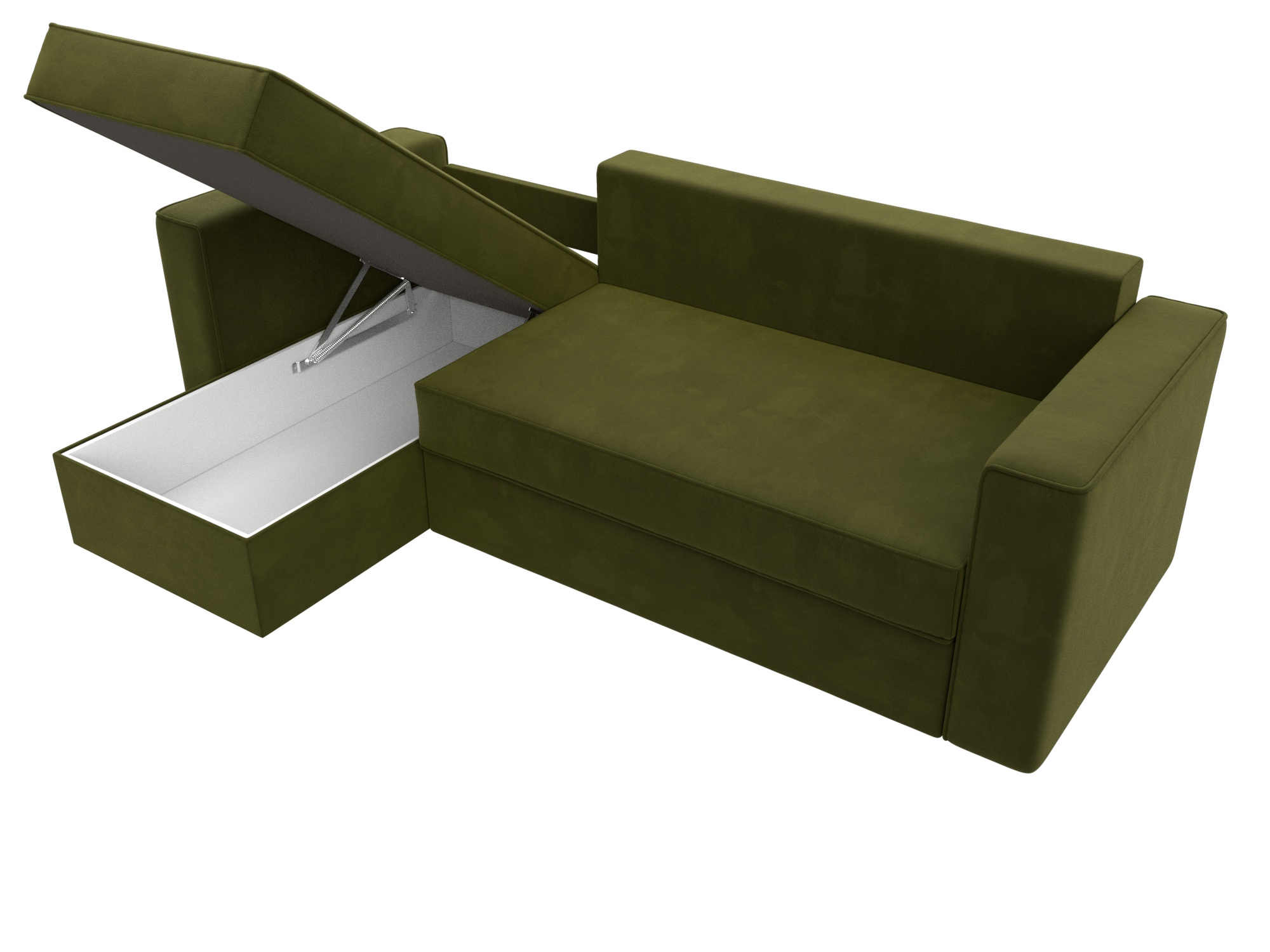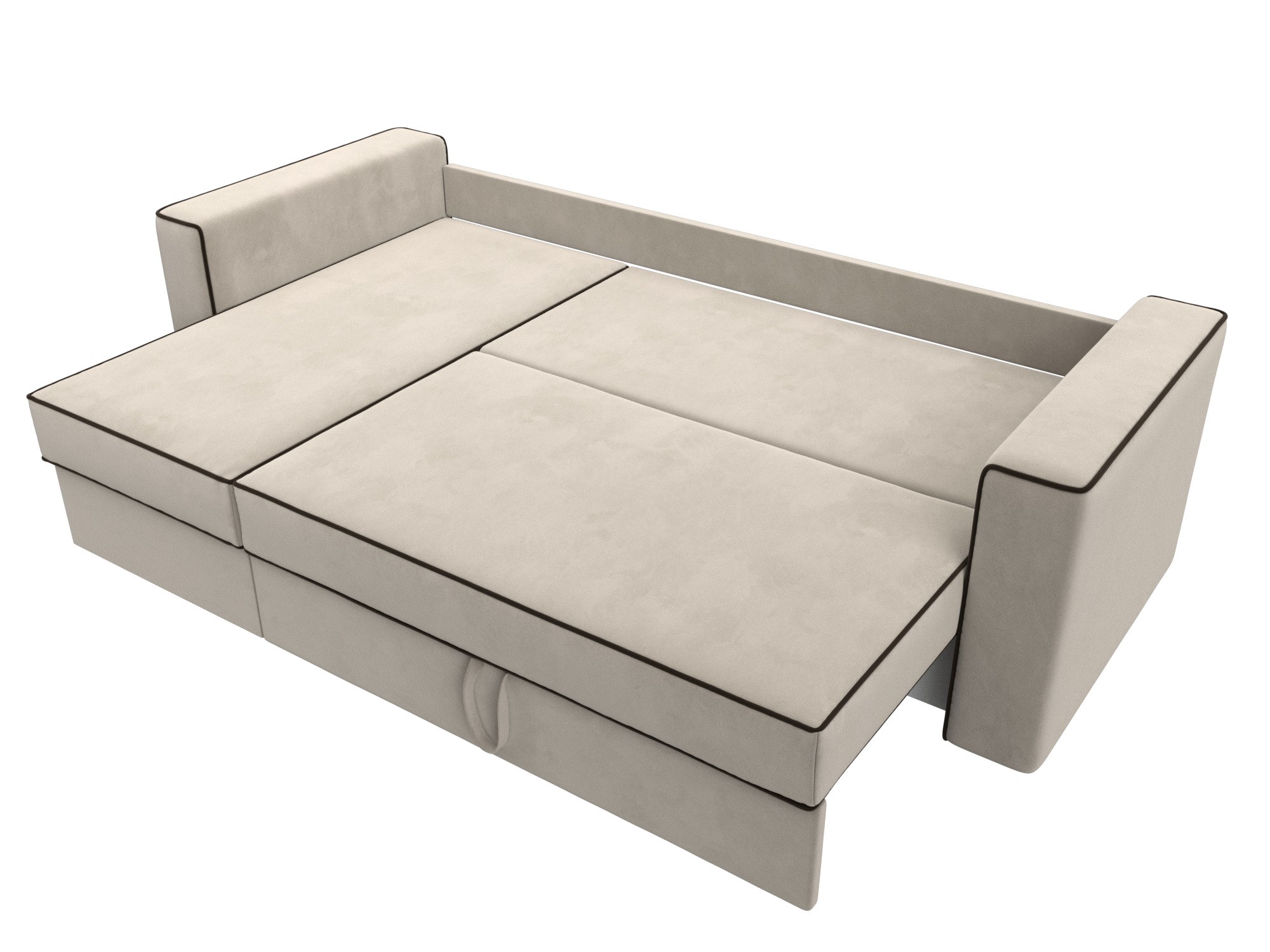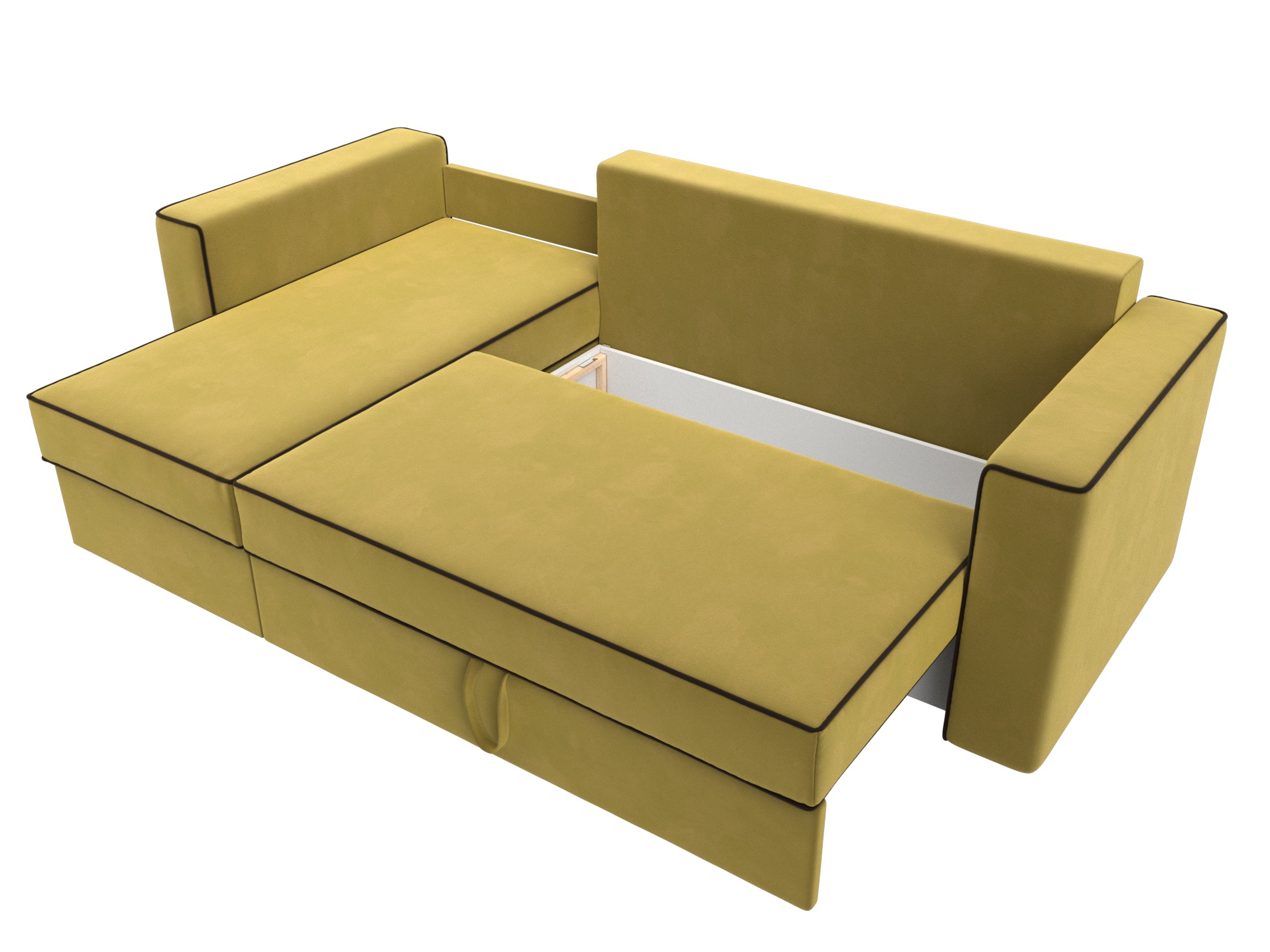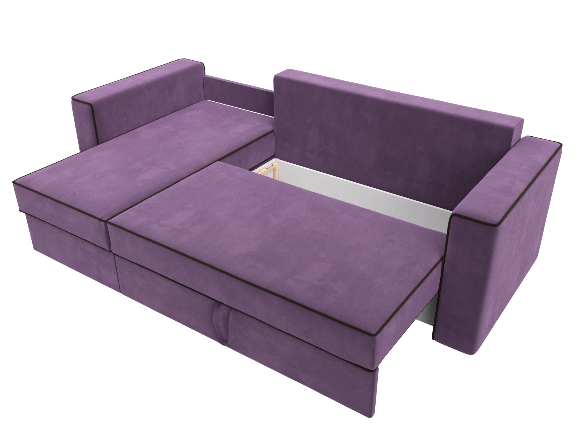 Механизм раскладки: еврокнижка. Разложить угловой диван можно одной рукой, выдвинув сиденье вперед и опустив спинку в образовавшуюся нишу. Несмотря на простоту использования, механизм представляет собой сложную конструкцию. Он состоит из прочных кронштейнов и металлических роликовых направляющих.