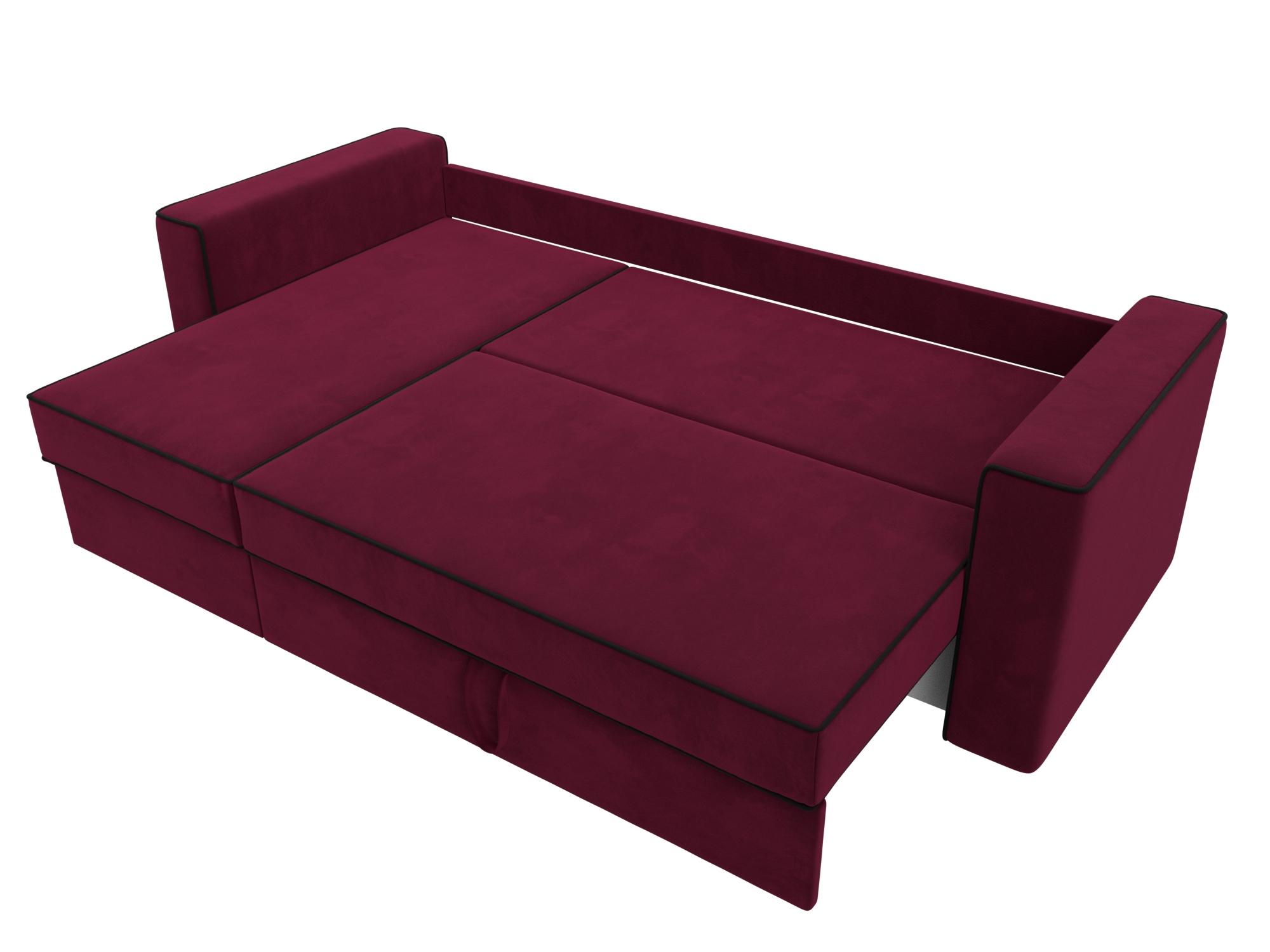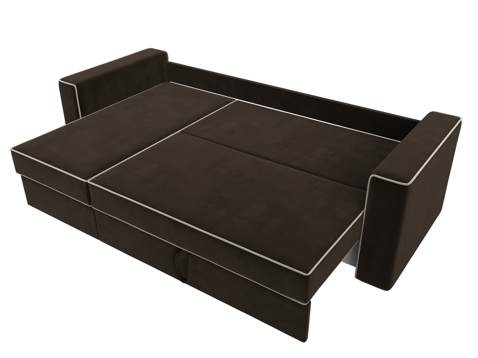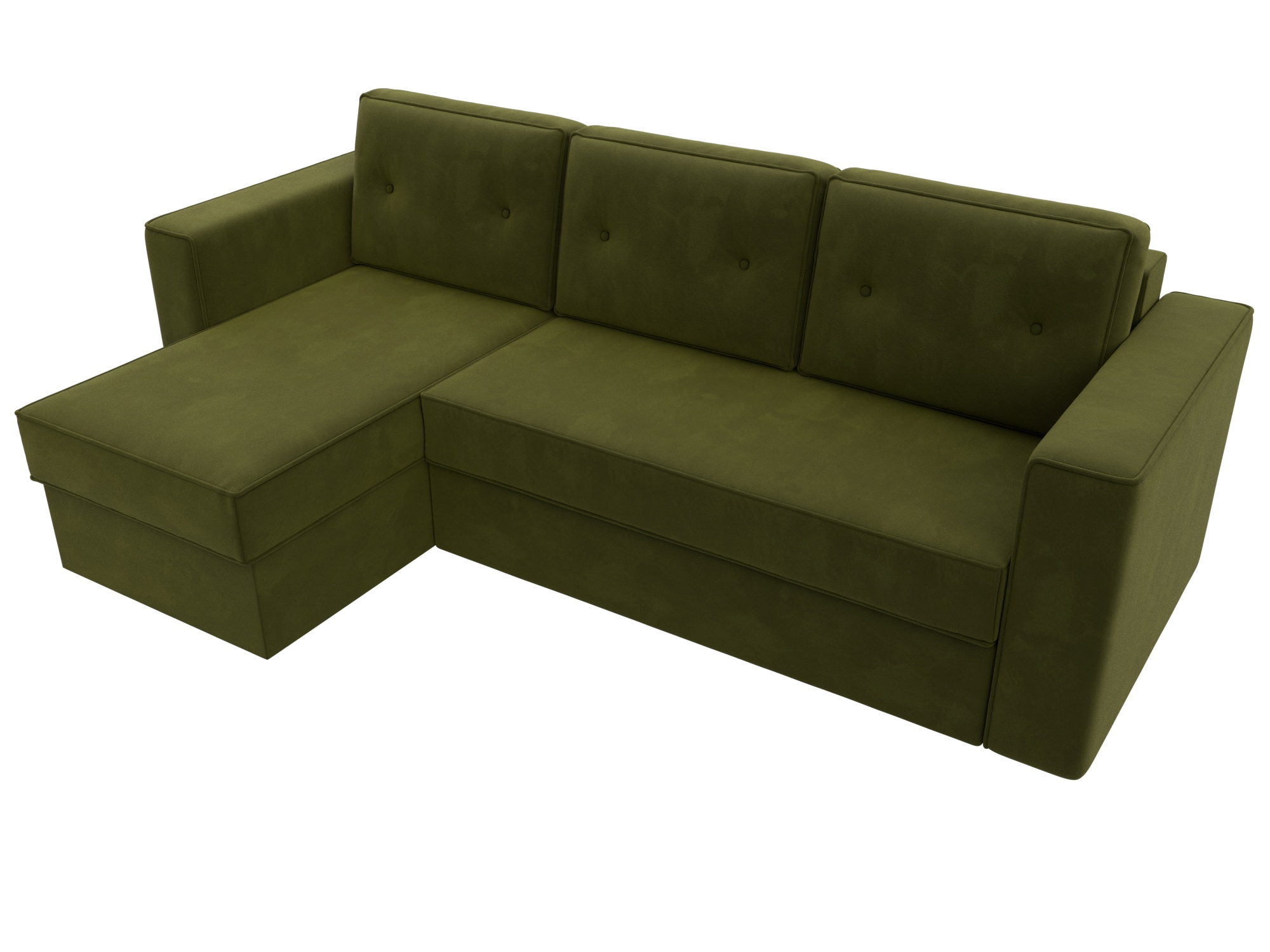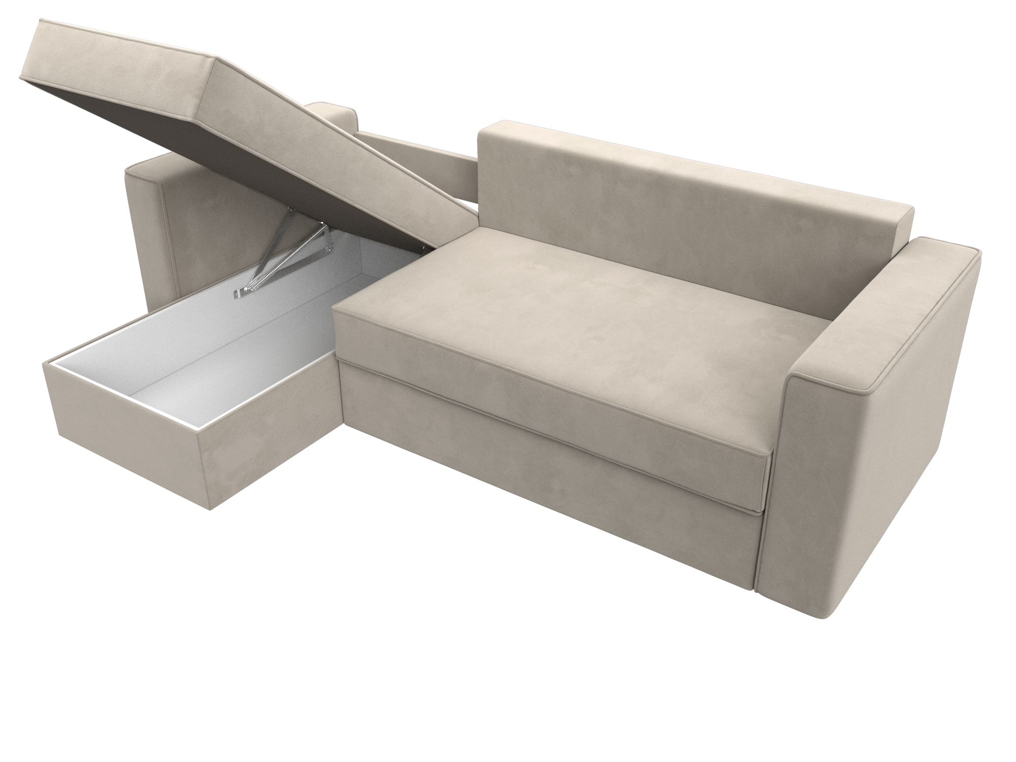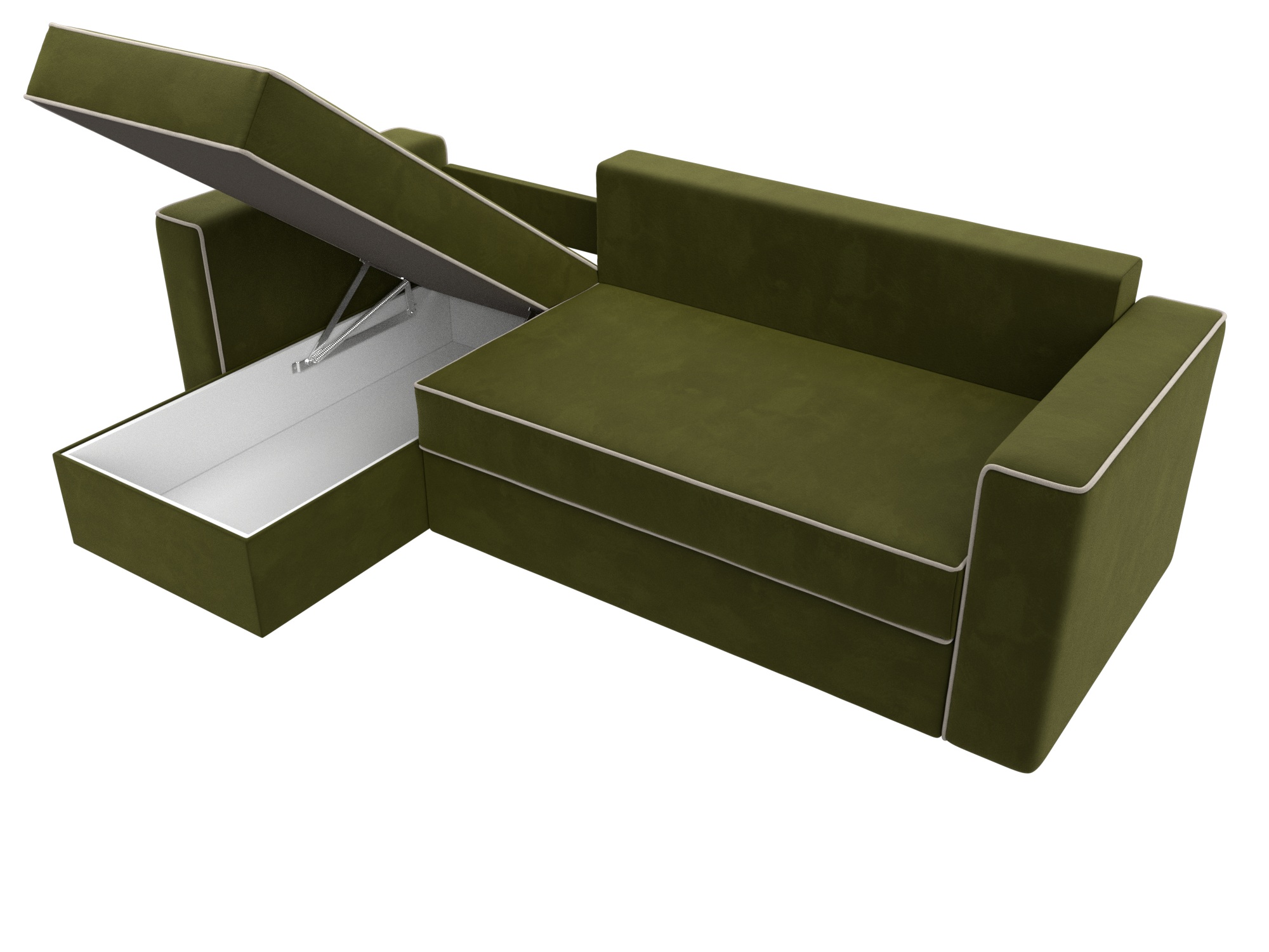 Механизм раскладки: еврокнижка. Разложить угловой диван можно одной рукой, выдвинув сиденье вперед и опустив спинку в образовавшуюся нишу. Несмотря на простоту использования, механизм представляет собой сложную конструкцию. Он состоит из прочных кронштейнов и металлических роликовых направляющих.