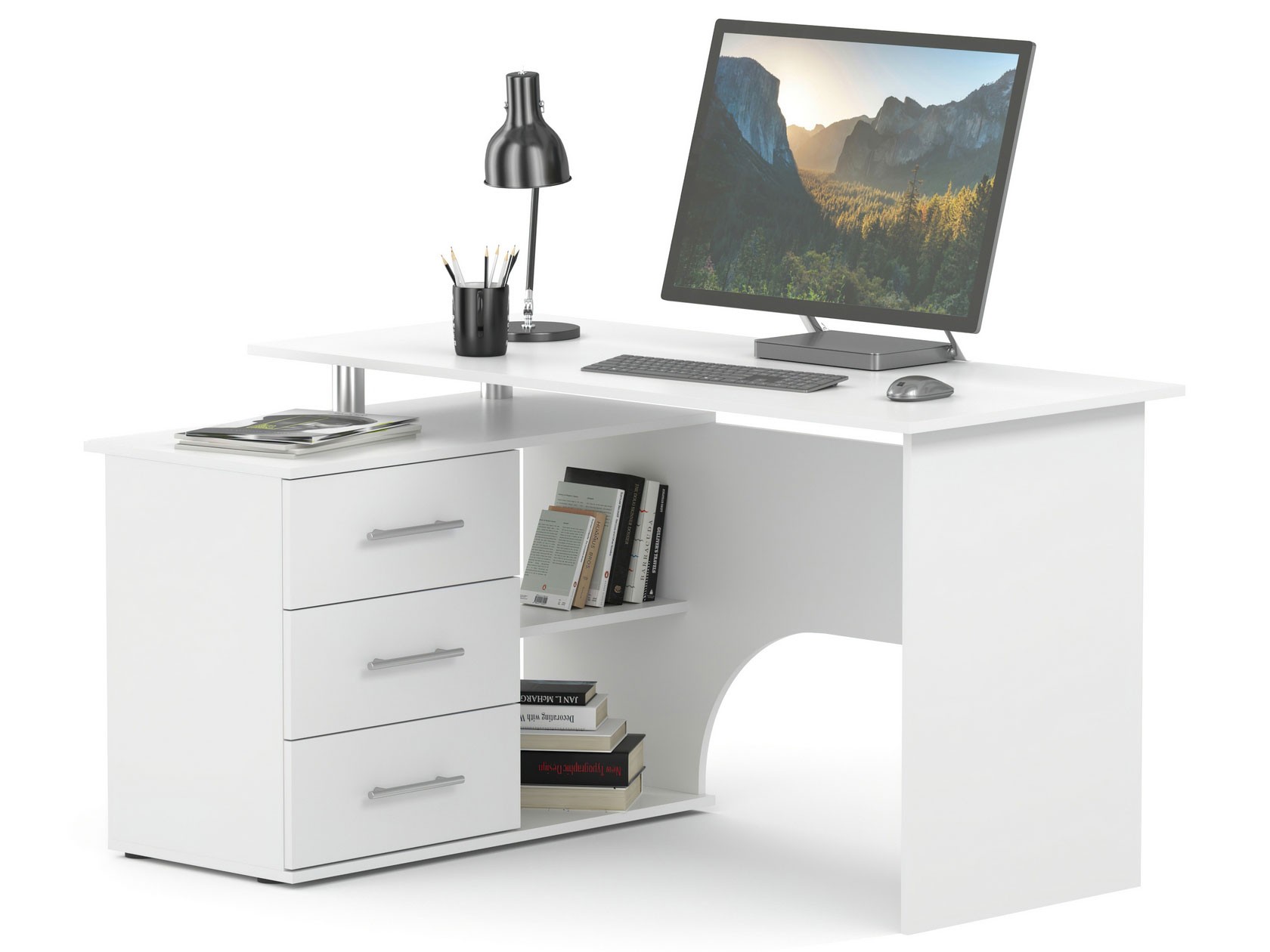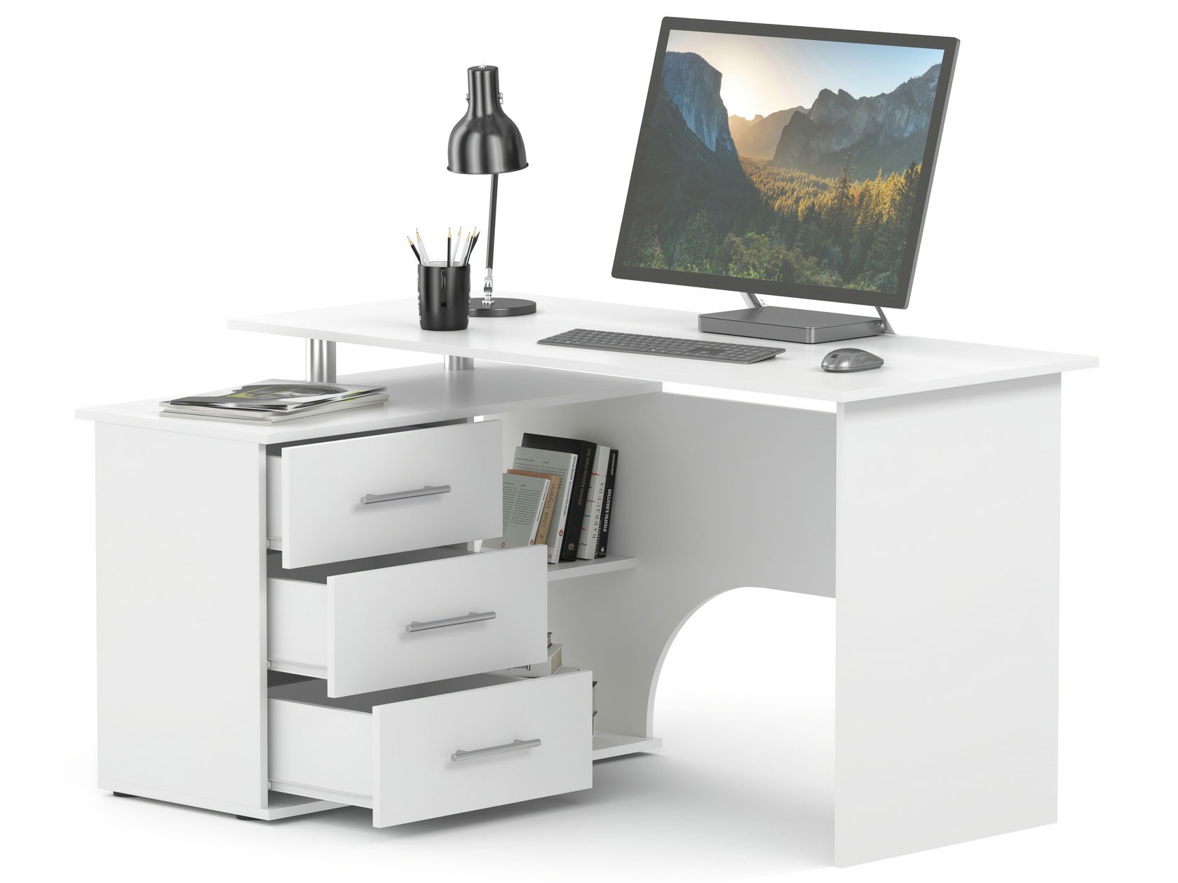 Угловой компьютерный стол КСТ-09 — идеальное решение для организации рабочего процесса как в домашнем кабинете, так и в офисной обстановке. Продуманная конструкция подразумевает две поверхности для размещения техники и подручных предметов, несколько открытых ниш и три выдвижных ящика для организации системы хранения книг, бумаг и канцелярских принадлежностей.