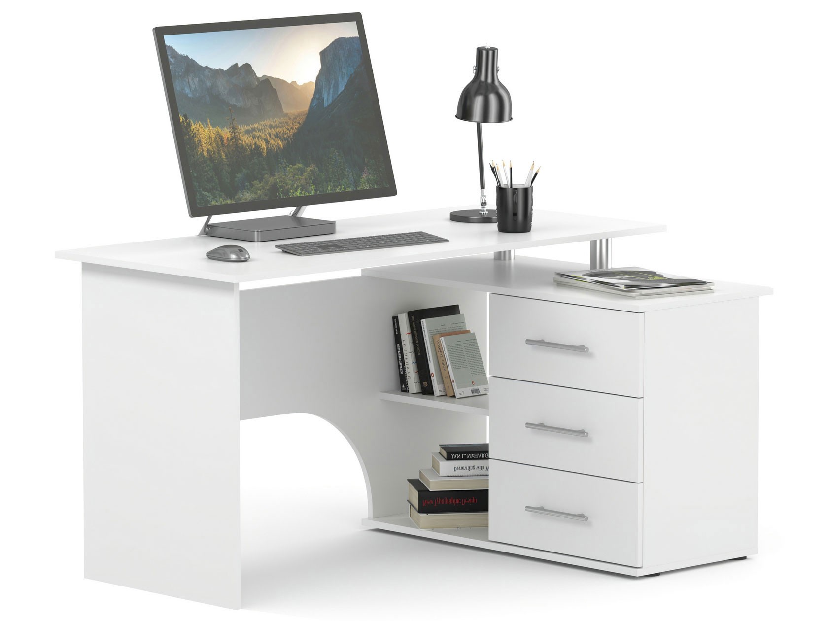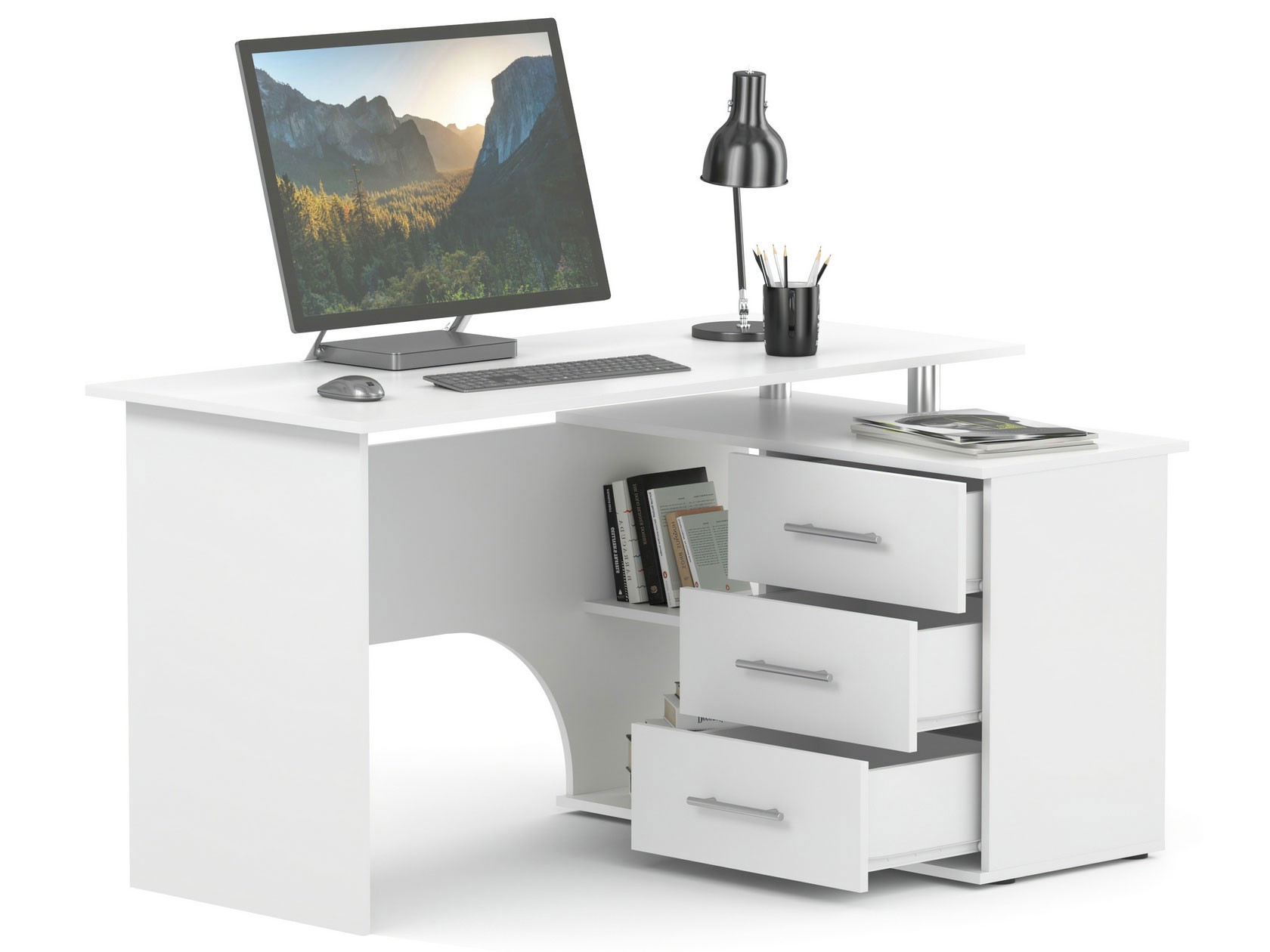 Угловой компьютерный стол КСТ-09 — идеальное решение для организации рабочего процесса как в домашнем кабинете, так и в офисной обстановке. Продуманная конструкция подразумевает две поверхности для размещения техники и подручных предметов, несколько открытых ниш и три выдвижных ящика для организации системы хранения книг, бумаг и канцелярских принадлежностей.