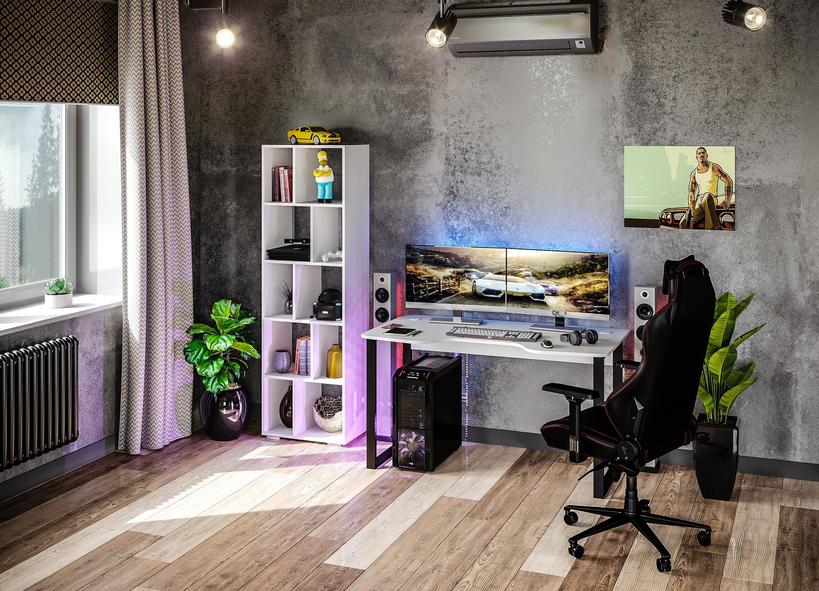 На игровом компьютерном столе КСТ-19 достаточно места для любой оргтехники или установки сразу двух мониторов. Металлические опоры обеспечивают прочность конструкции, а поверхность с анатомическим вырезом позволяет расположиться так, чтобы локти всегда оставались на столе. С обеих сторон предусмотрены отверстия с заглушками для вывода проводов.