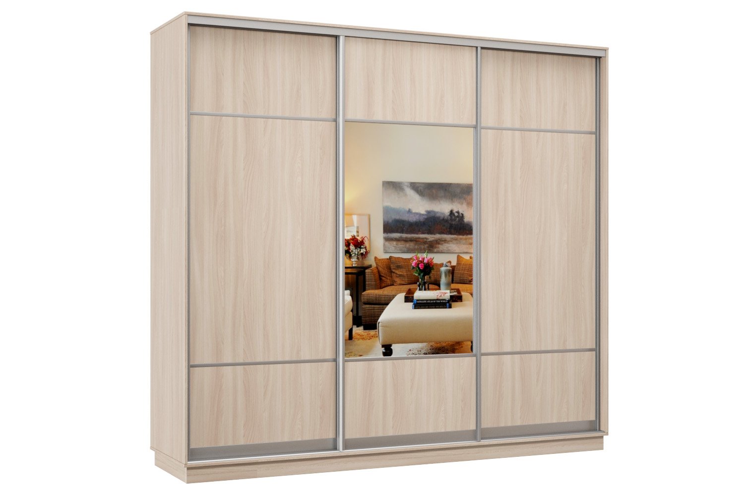 Шкаф-купе Премьер Лайт 55 (08;05;08) трехдверный (Ясень шимо светлый)