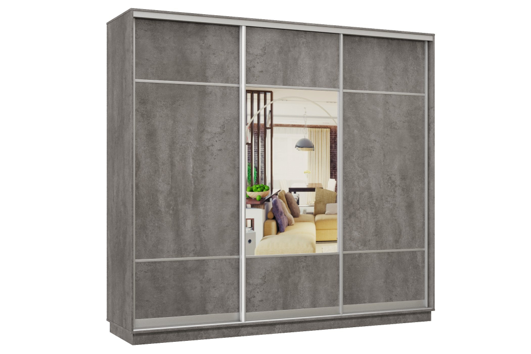 Шкаф-купе Премьер Лайт 57 (08;05;08) трехдверный (Бетон)